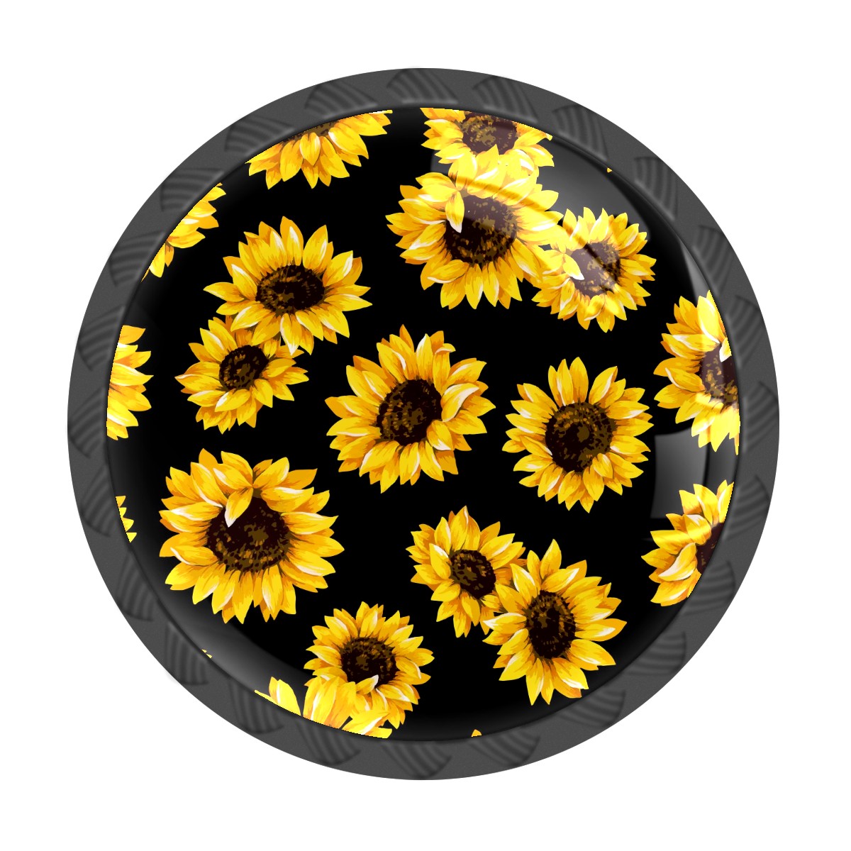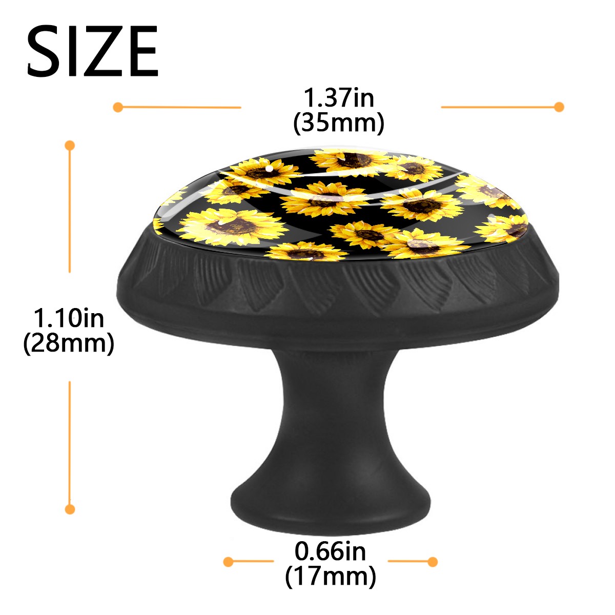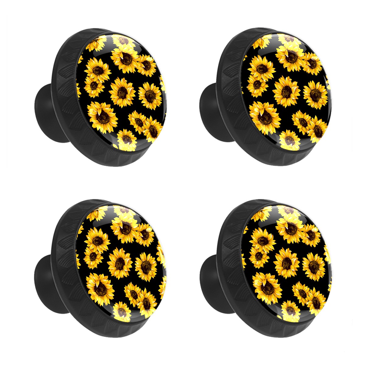 4 Pack Drawer Pulls Yellow Sunflower Black Crystal Glass Round Knobs Pulls Handles for Cabinets Dressers Kitchen Bathroom - Cupboards Wardrobes Hardware Furniture Knobs