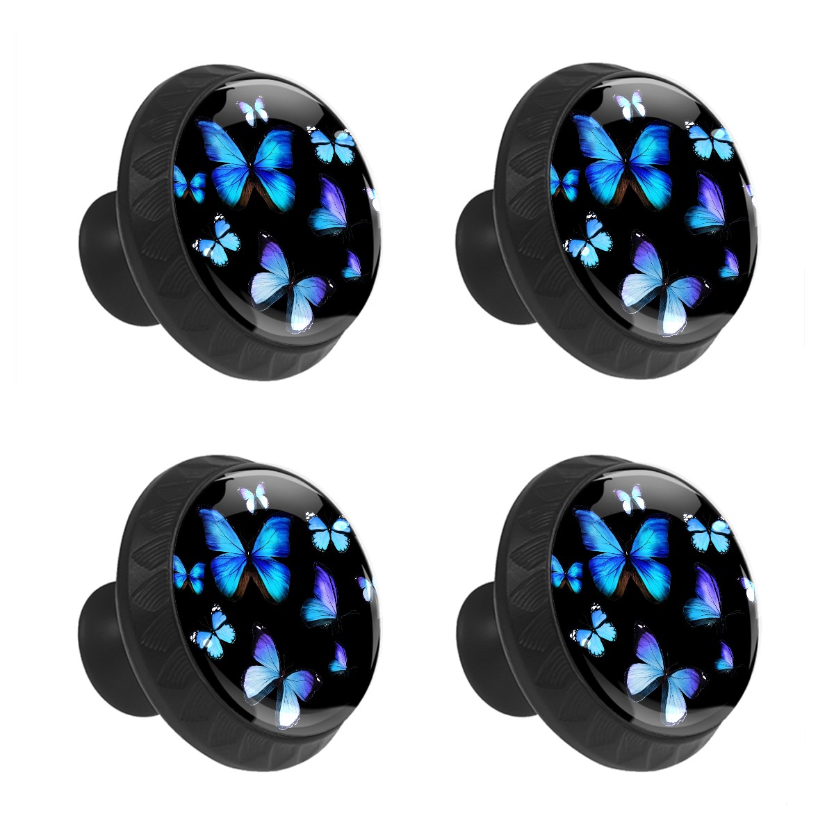 4 Pack Drawer Pulls Butterfly Blue Crystal Glass Round Knobs Pulls Handles for Cabinets Dressers Kitchen Bathroom - Cupboards Wardrobes Hardware Furniture Knobs