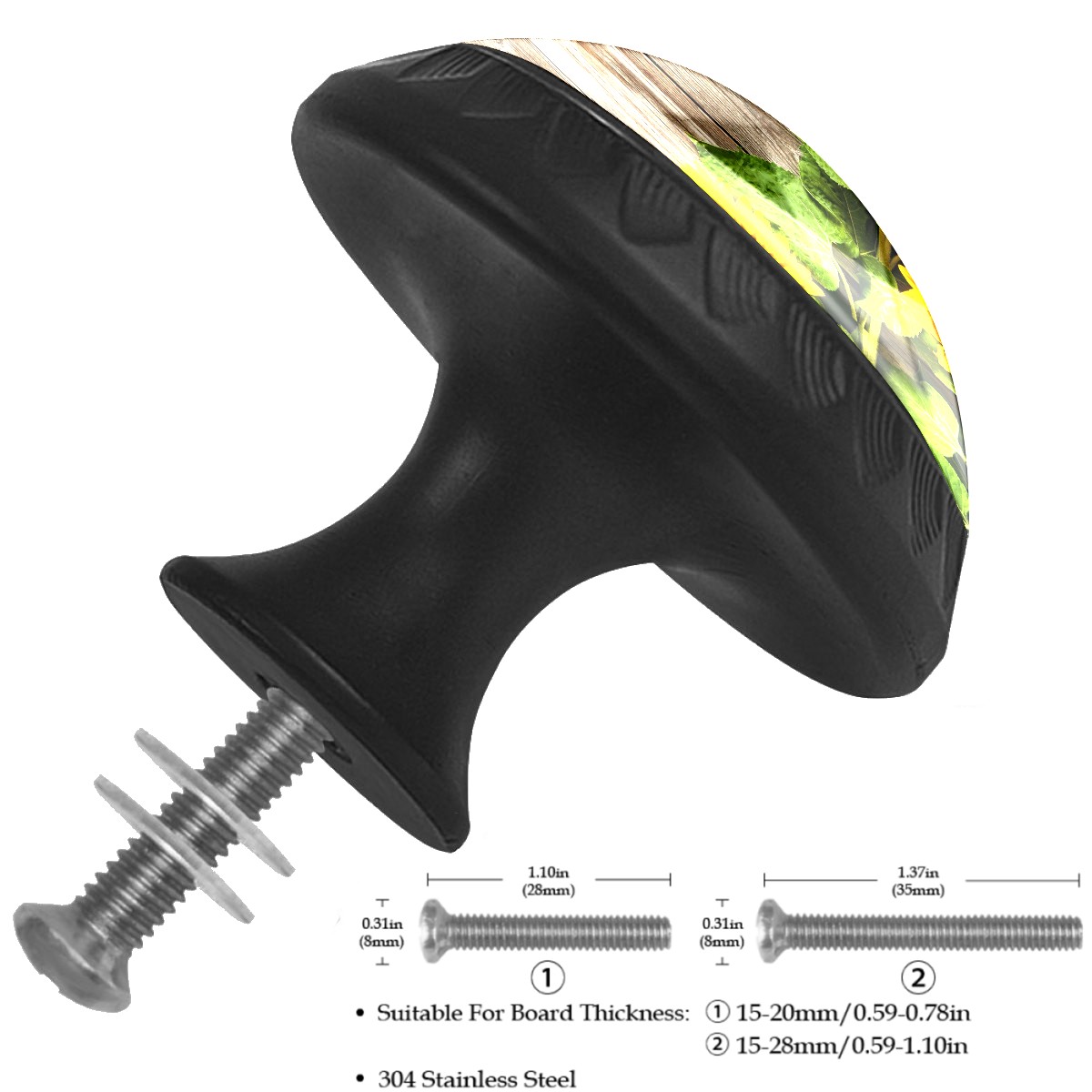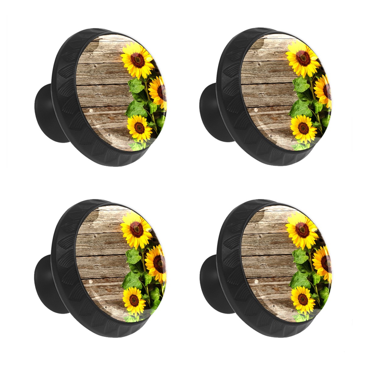 4 Pack Drawer Pulls Sunflowers Floral On Wood Crystal Glass Round Knobs Pulls Handles for Cabinets Dressers Kitchen Bathroom - Cupboards Wardrobes Hardware Furniture Knobs