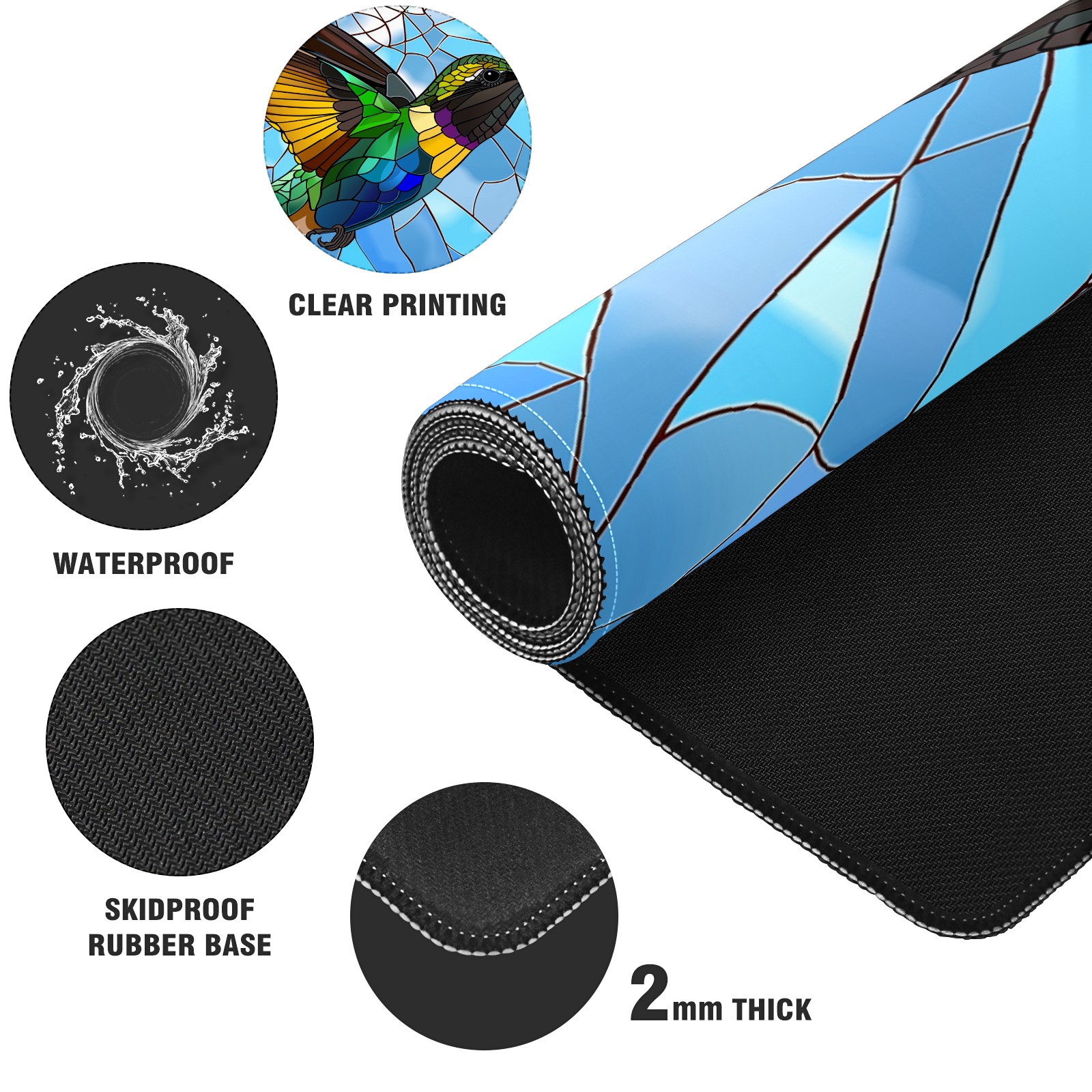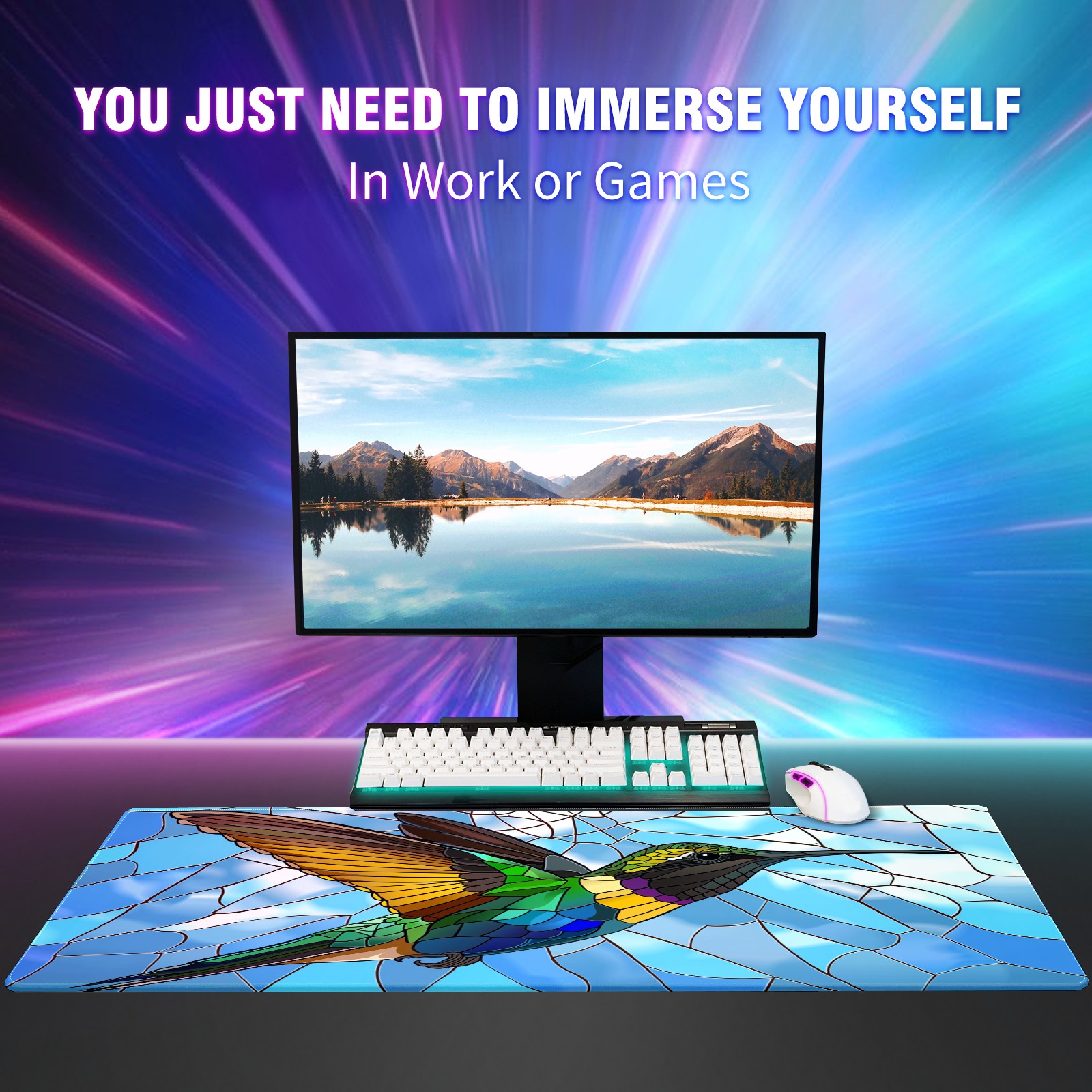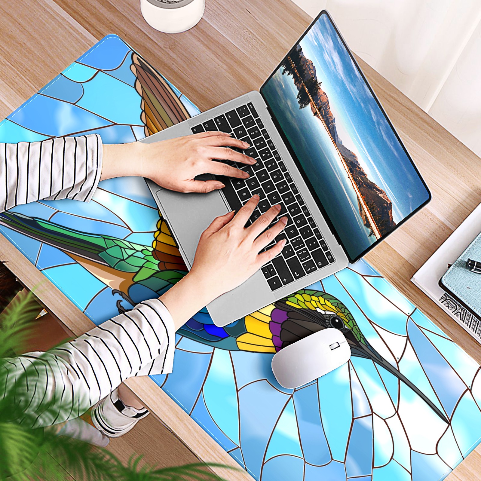 Hummingbird Blue Mouse Pad 35.4'' x 15.7'' Extra Large Gaming Mousepad Non-Slip Soft Rubber Desk Mat Pad Computer Keyboard Mats for Desk Desktop Mat