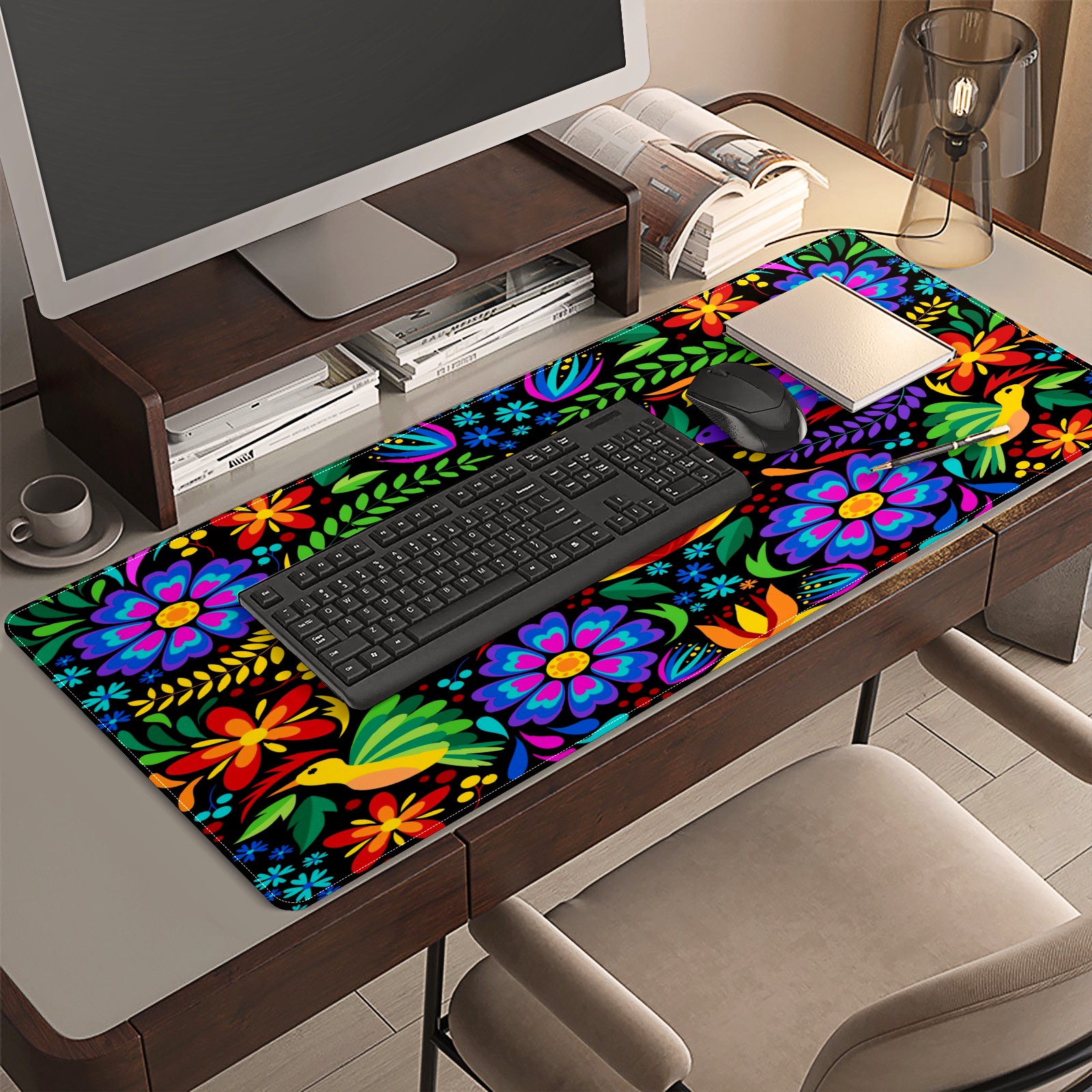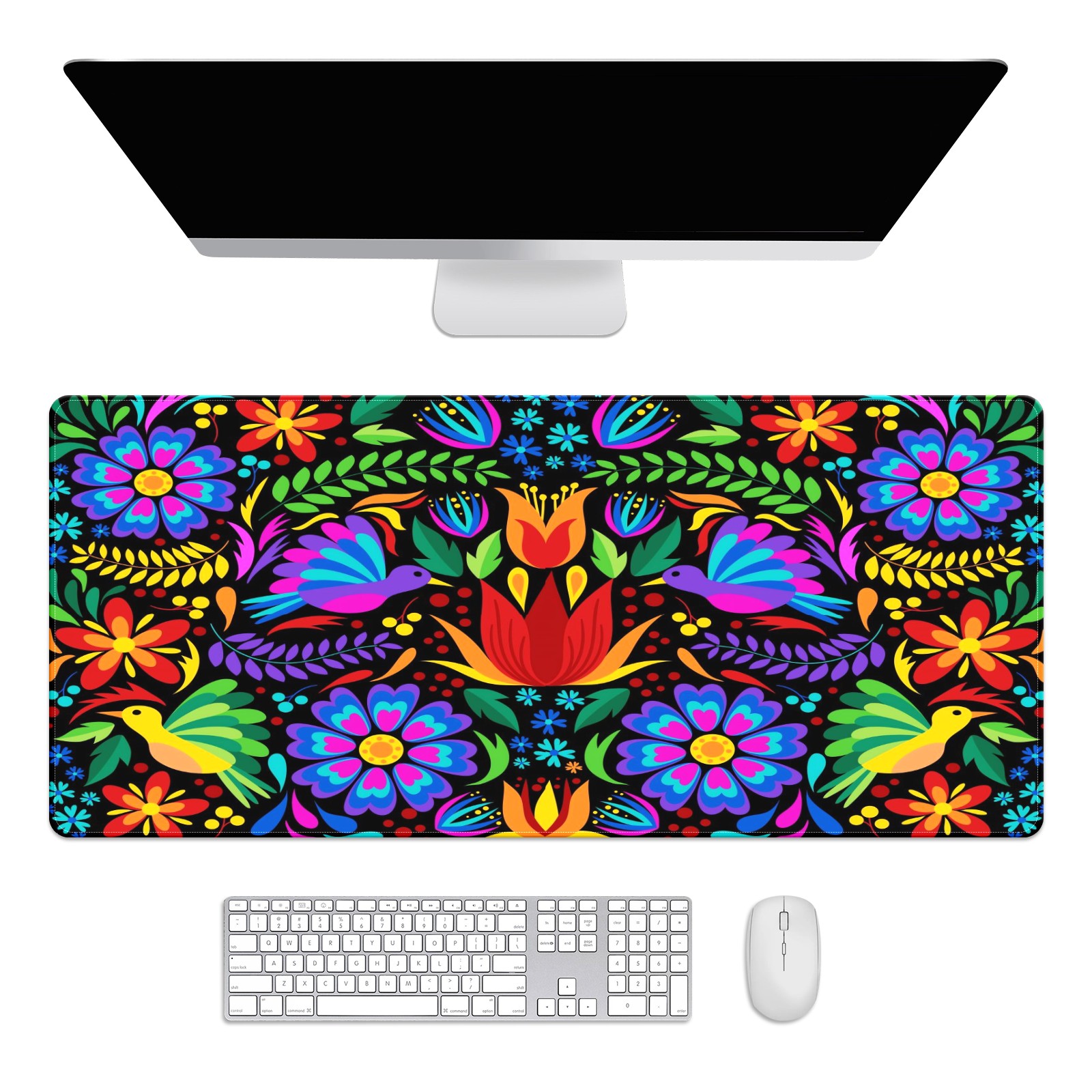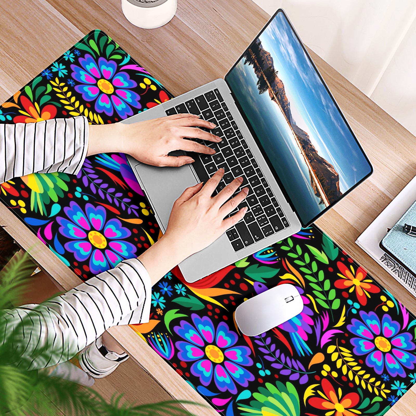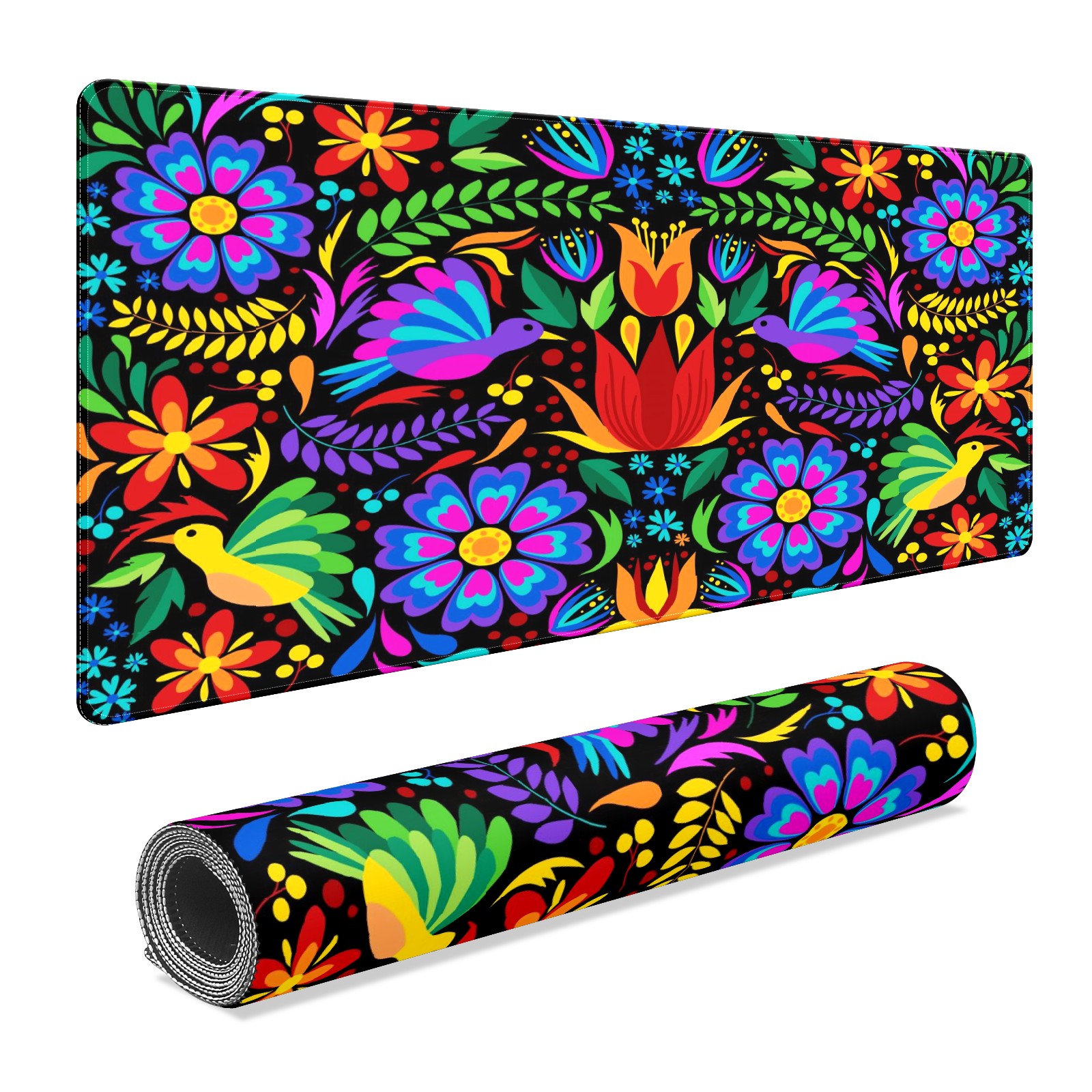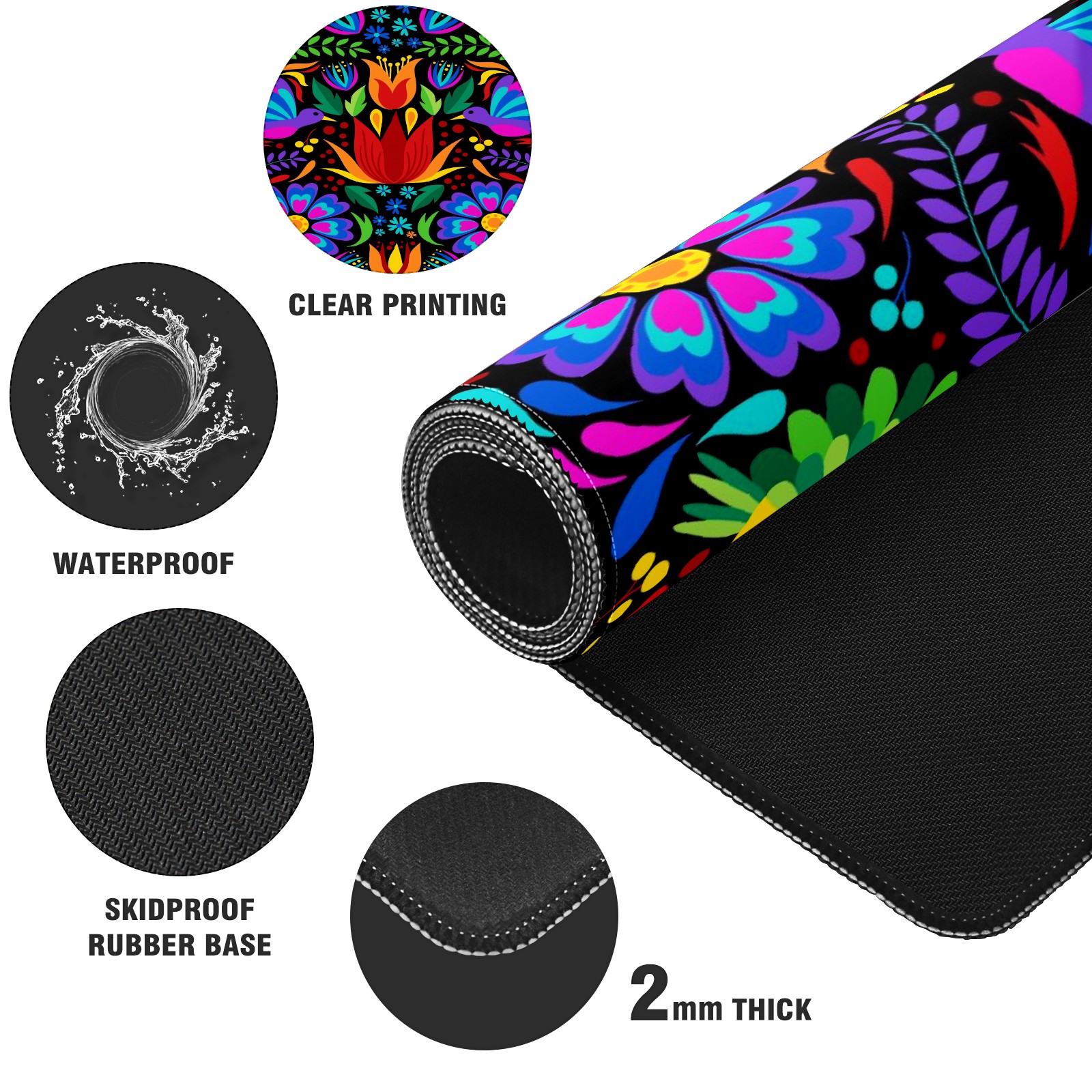 Mexican Flower Boho Mouse Pad 35.4'' x 15.7'' Extra Large Gaming Mousepad Non-Slip Soft Rubber Desk Mat Pad Computer Keyboard Mats for Desk Desktop Mat
