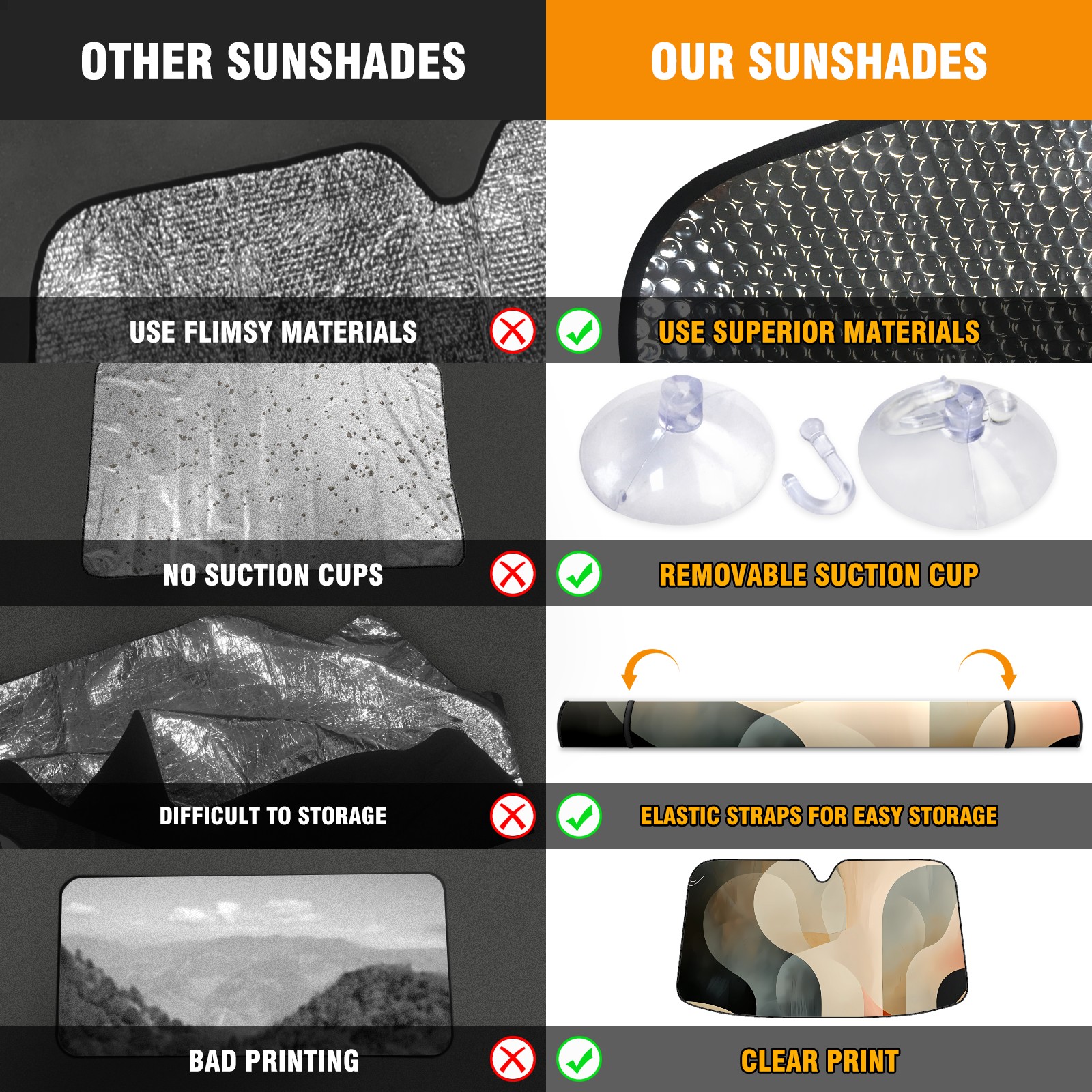 • <b>Foldable Premium Car Windshield Sunshade is your great solution to reduce your car’s interior temperature dramatically!This is definitely a must-have item for your summer travel! </b> <br> ●<b>Size: 55"L x 30"W </b> <br> ●<b>Blocking Uv Rays & Heat Insulation</b><br> Our vehicle sunshade provides effective UV, sun, and summer heat protection .Maintains dashboards by preventing fading and cracking <br> ●<b>Easy-To-Store Folding Design Makes Storage Convenient</b> <br> Car sunshades comes with removable suction cups and elastic bands that you can install or remove easily and quickly. In a matter of seconds you can install your purchased windshield visor. And the detachable suction cups on the automotive's sun visor leave no marks on the windows when removed. When not in use, the front windshield can be conveniently and effectively placed on the door pocket or the dashboard, which is beautiful and does not occupy the interior space.<br> <br> <b>Stay cool and protected this summer with our fun and functional car windshield sun shade!Perfectly crafted to fit most vehicles, this premium quality sun blocker is your go-to automotive accessory. it's time to say goodbye to scorching hot seats and hello to comfort on every drive!</b>