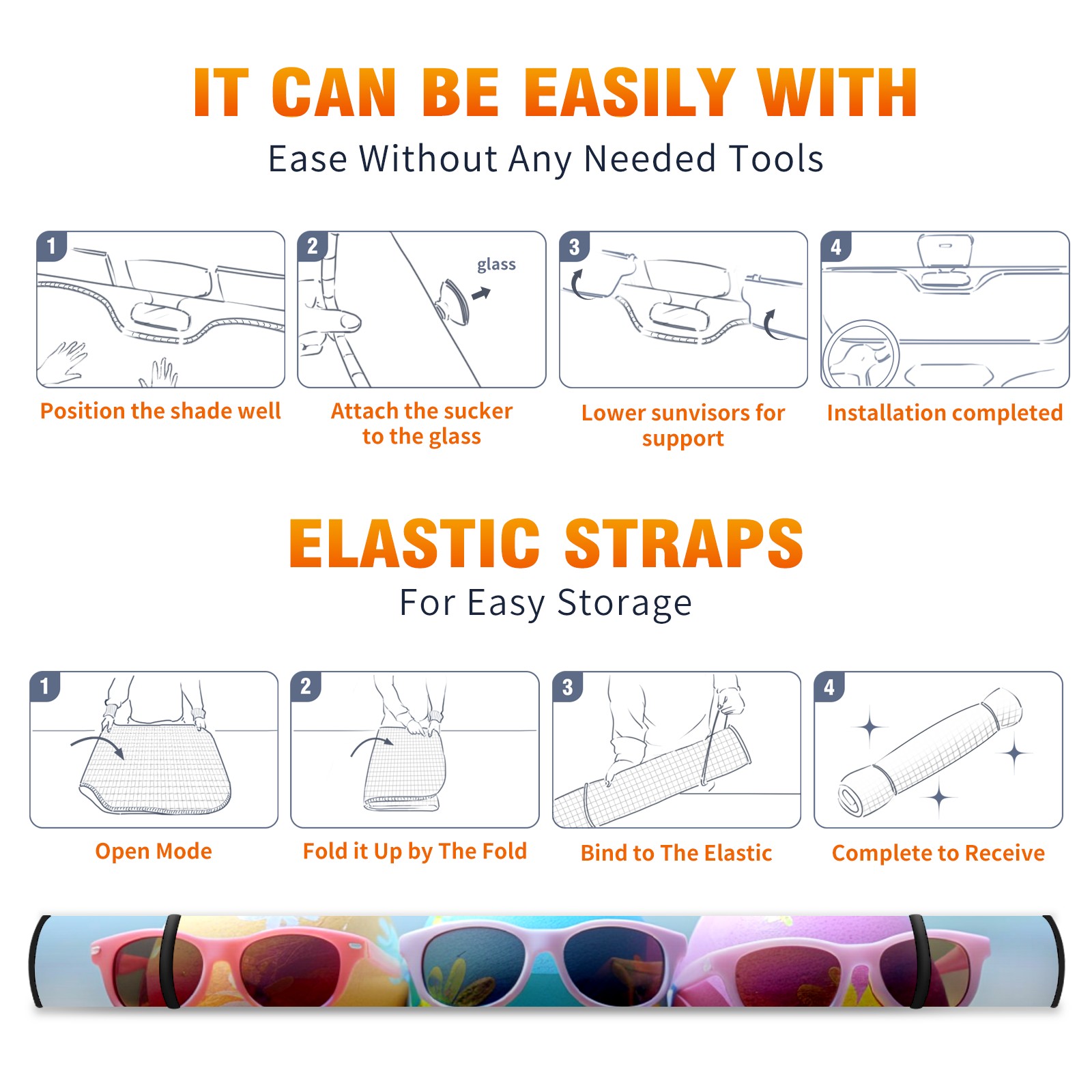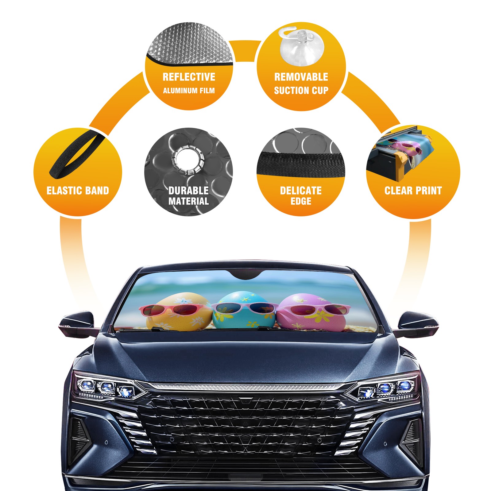 <b>Foldable Premium Car Windshield Sunshade is your great solution to reduce your car’s interior temperature dramatically!This is definitely a must-have item for your summer travel! </b> <br> ●<b>Size: 55"L x 30"W </b> <br> ●<b>Blocking Uv Rays & Heat Insulation</b><br> Our vehicle sunshade provides effective UV, sun, and summer heat protection .Maintains dashboards by preventing fading and cracking <br> ●<b>Easy-To-Store Folding Design Makes Storage Convenient</b> <br> Car sunshades comes with removable suction cups and elastic bands that you can install or remove easily and quickly. In a matter of seconds you can install your purchased windshield visor. And the detachable suction cups on the automotive's sun visor leave no marks on the windows when removed. When not in use, the front windshield can be conveniently and effectively placed on the door pocket or the dashboard, which is beautiful and does not occupy the interior space.<br> <br> <b>Stay cool and protected this summer with our fun and functional car windshield sun shade!Perfectly crafted to fit most vehicles, this premium quality sun blocker is your go-to automotive accessory. it's time to say goodbye to scorching hot seats and hello to comfort on every drive!</b>