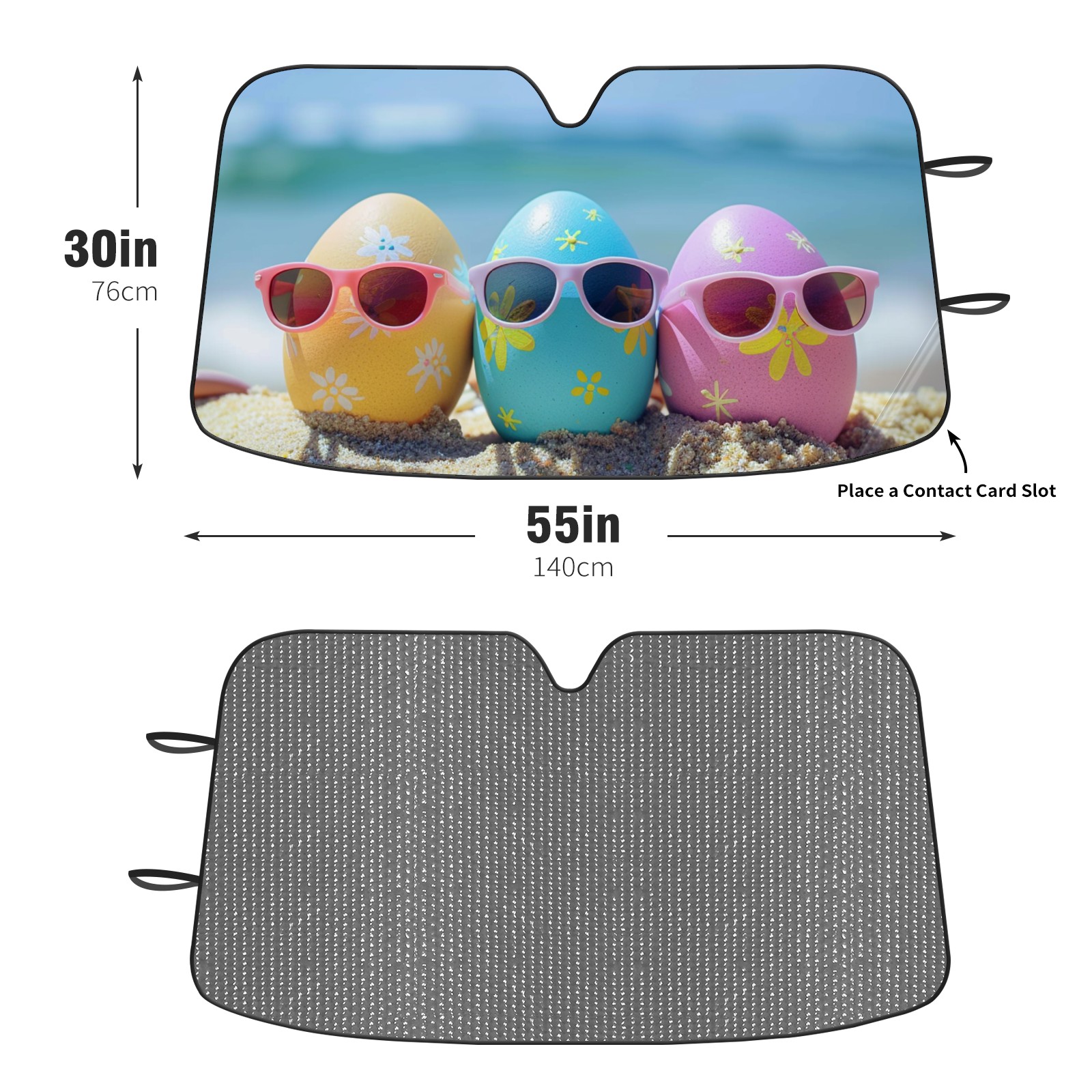 • <b>Foldable Premium Car Windshield Sunshade is your great solution to reduce your car’s interior temperature dramatically!This is definitely a must-have item for your summer travel! </b> <br> ●<b>Size: 55"L x 30"W </b> <br> ●<b>Blocking Uv Rays & Heat Insulation</b><br> Our vehicle sunshade provides effective UV, sun, and summer heat protection .Maintains dashboards by preventing fading and cracking <br> ●<b>Easy-To-Store Folding Design Makes Storage Convenient</b> <br> Car sunshades comes with removable suction cups and elastic bands that you can install or remove easily and quickly. In a matter of seconds you can install your purchased windshield visor. And the detachable suction cups on the automotive's sun visor leave no marks on the windows when removed. When not in use, the front windshield can be conveniently and effectively placed on the door pocket or the dashboard, which is beautiful and does not occupy the interior space.<br> <br> <b>Stay cool and protected this summer with our fun and functional car windshield sun shade!Perfectly crafted to fit most vehicles, this premium quality sun blocker is your go-to automotive accessory. it's time to say goodbye to scorching hot seats and hello to comfort on every drive!</b>