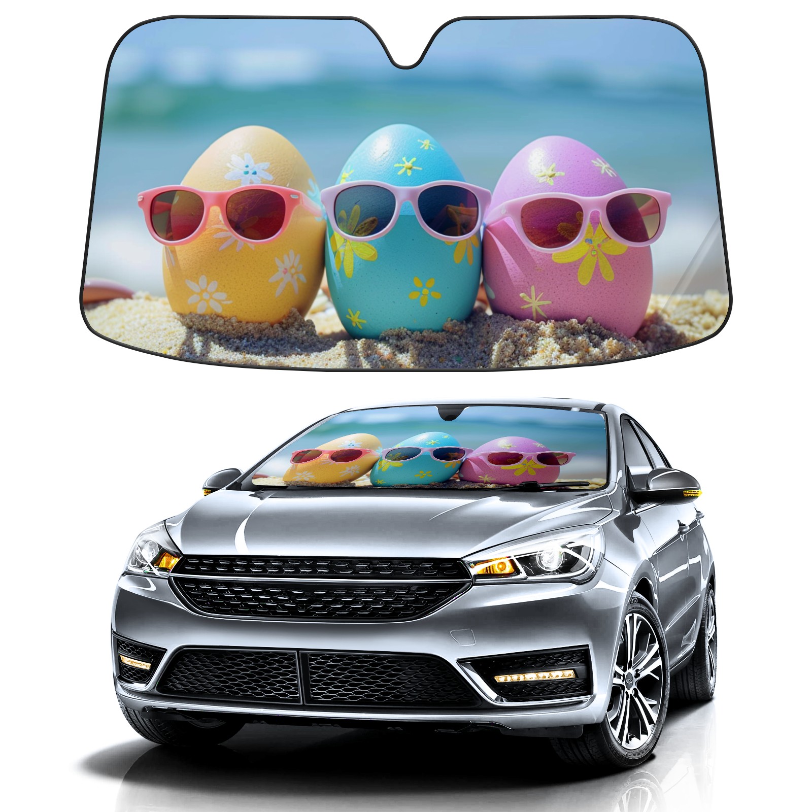 Car Windshield Sun Shade for Front Window-Easter Eggs (1) Foldable Sun Visor Cover Sunshade for Car Windshield-Car Heat Shield Sunshade Protector-Car Privacy Sun Blocker