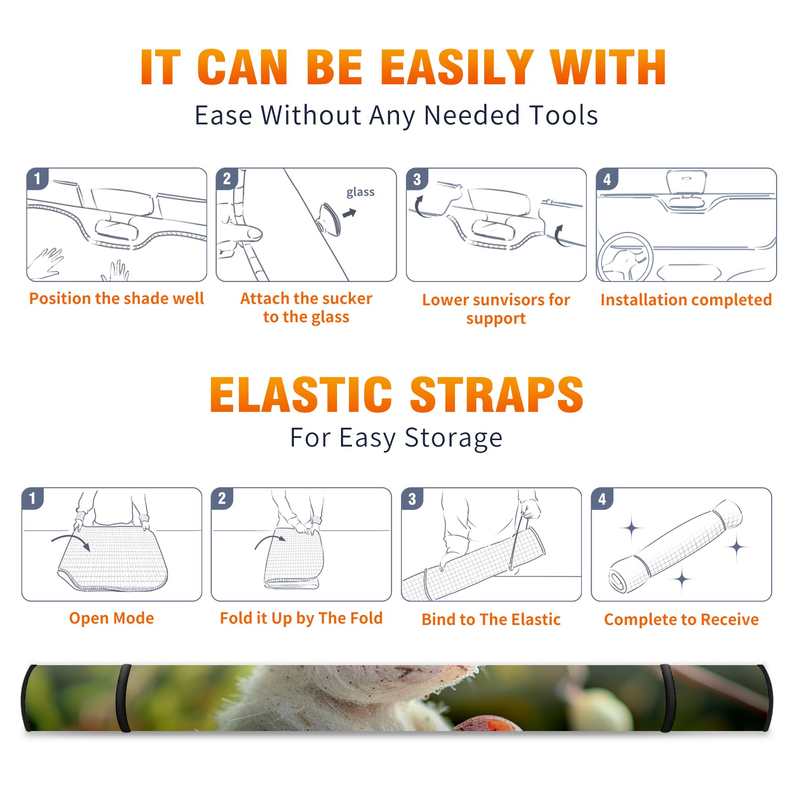 <b>Foldable Premium Car Windshield Sunshade is your great solution to reduce your car’s interior temperature dramatically!This is definitely a must-have item for your summer travel! </b> <br> ●<b>Size: 55"L x 30"W </b> <br> ●<b>Blocking Uv Rays & Heat Insulation</b><br> Our vehicle sunshade provides effective UV, sun, and summer heat protection .Maintains dashboards by preventing fading and cracking <br> ●<b>Easy-To-Store Folding Design Makes Storage Convenient</b> <br> Car sunshades comes with removable suction cups and elastic bands that you can install or remove easily and quickly. In a matter of seconds you can install your purchased windshield visor. And the detachable suction cups on the automotive's sun visor leave no marks on the windows when removed. When not in use, the front windshield can be conveniently and effectively placed on the door pocket or the dashboard, which is beautiful and does not occupy the interior space.<br> <br> <b>Stay cool and protected this summer with our fun and functional car windshield sun shade!Perfectly crafted to fit most vehicles, this premium quality sun blocker is your go-to automotive accessory. it's time to say goodbye to scorching hot seats and hello to comfort on every drive!</b>