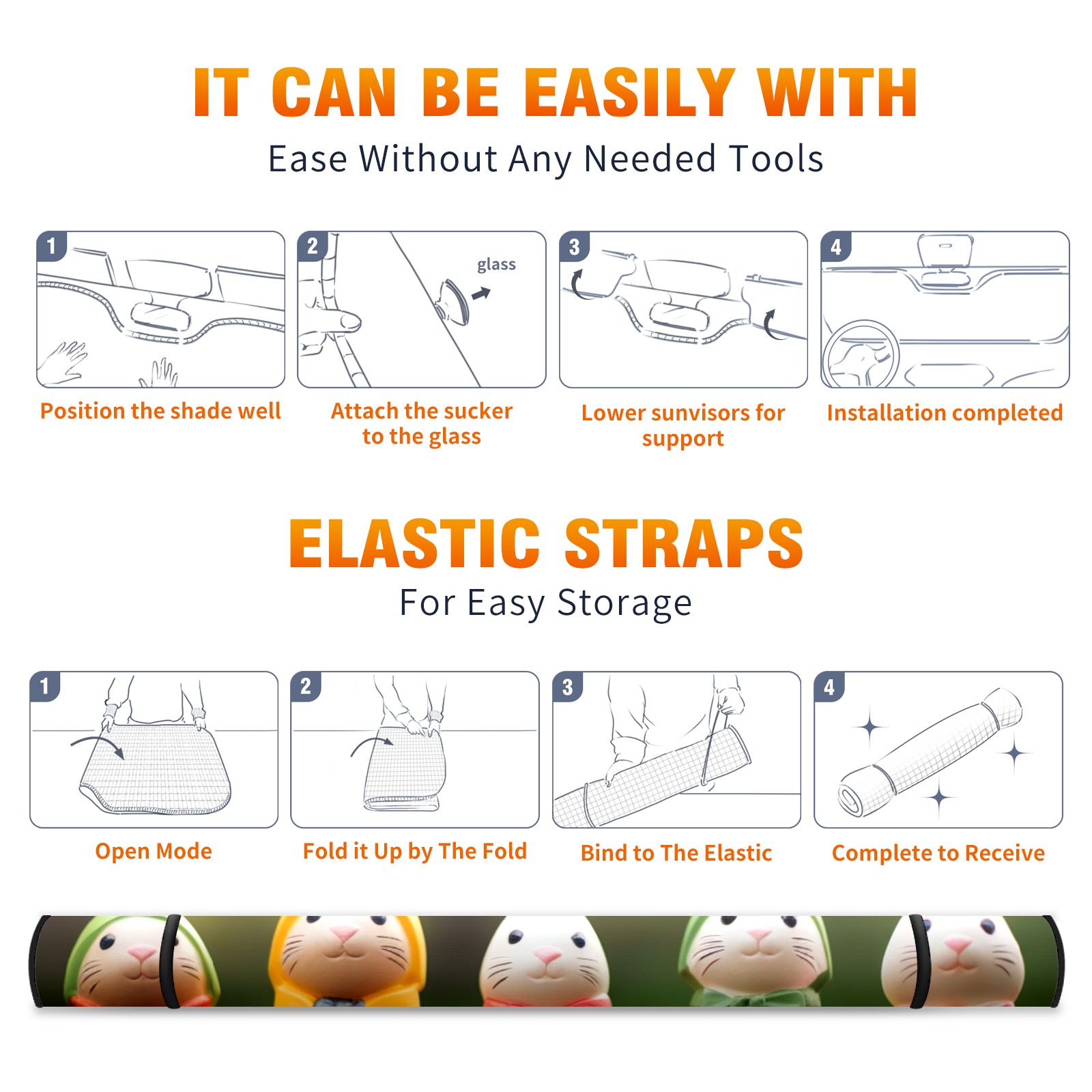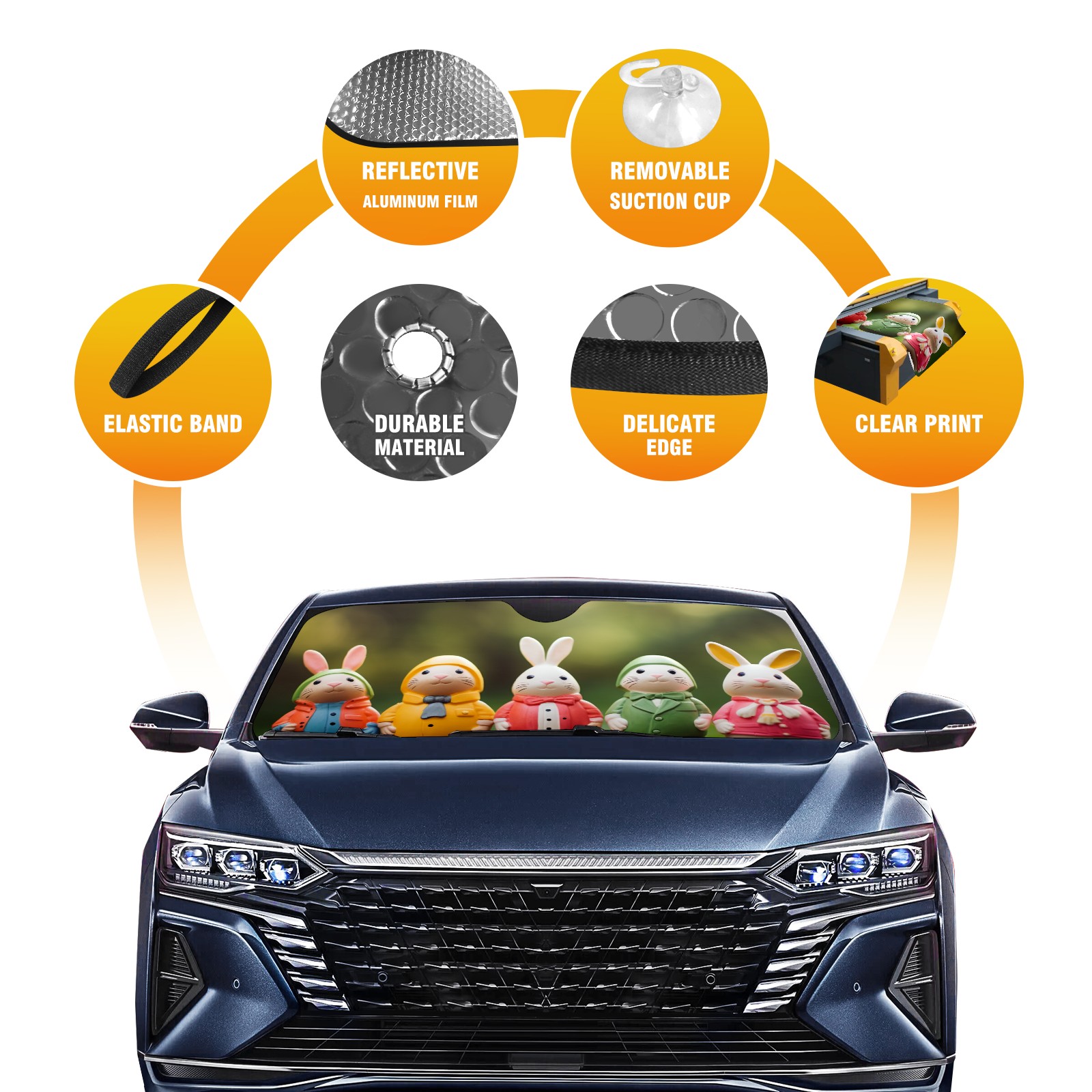 • <b>Foldable Premium Car Windshield Sunshade is your great solution to reduce your car’s interior temperature dramatically!This is definitely a must-have item for your summer travel! </b> <br> ●<b>Size: 55"L x 30"W </b> <br> ●<b>Blocking Uv Rays & Heat Insulation</b><br> Our vehicle sunshade provides effective UV, sun, and summer heat protection .Maintains dashboards by preventing fading and cracking <br> ●<b>Easy-To-Store Folding Design Makes Storage Convenient</b> <br> Car sunshades comes with removable suction cups and elastic bands that you can install or remove easily and quickly. In a matter of seconds you can install your purchased windshield visor. And the detachable suction cups on the automotive's sun visor leave no marks on the windows when removed. When not in use, the front windshield can be conveniently and effectively placed on the door pocket or the dashboard, which is beautiful and does not occupy the interior space.<br> <br> <b>Stay cool and protected this summer with our fun and functional car windshield sun shade!Perfectly crafted to fit most vehicles, this premium quality sun blocker is your go-to automotive accessory. it's time to say goodbye to scorching hot seats and hello to comfort on every drive!</b>