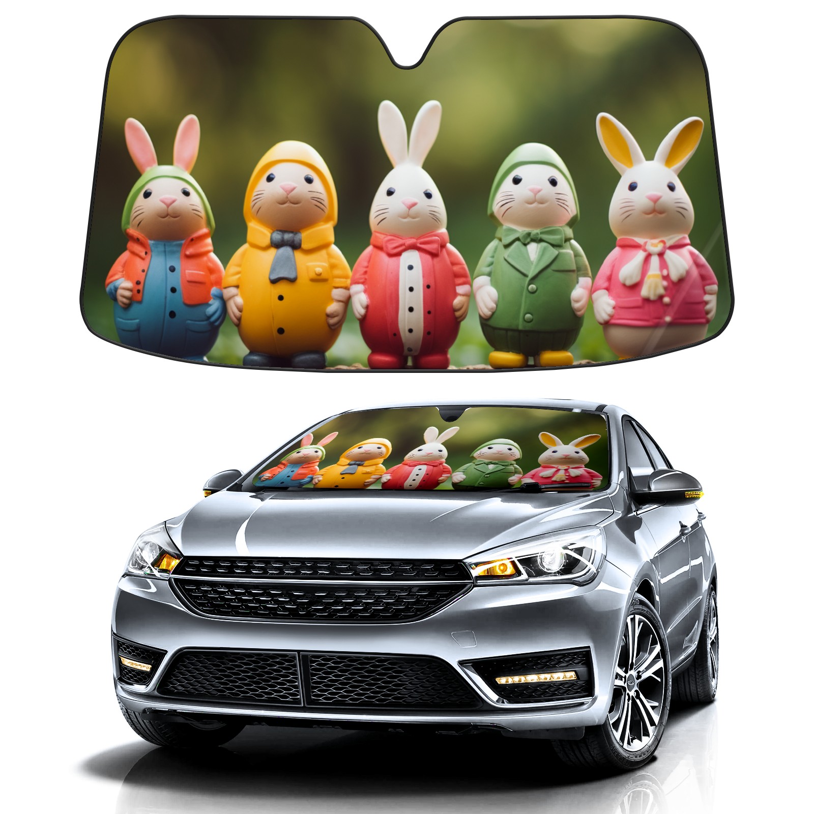 Car Windshield Sun Shade for Front Window-Easter Bunny13 Foldable Sun Visor Cover Sunshade for Car Windshield-Car Heat Shield Sunshade Protector-Car Privacy Sun Blocker