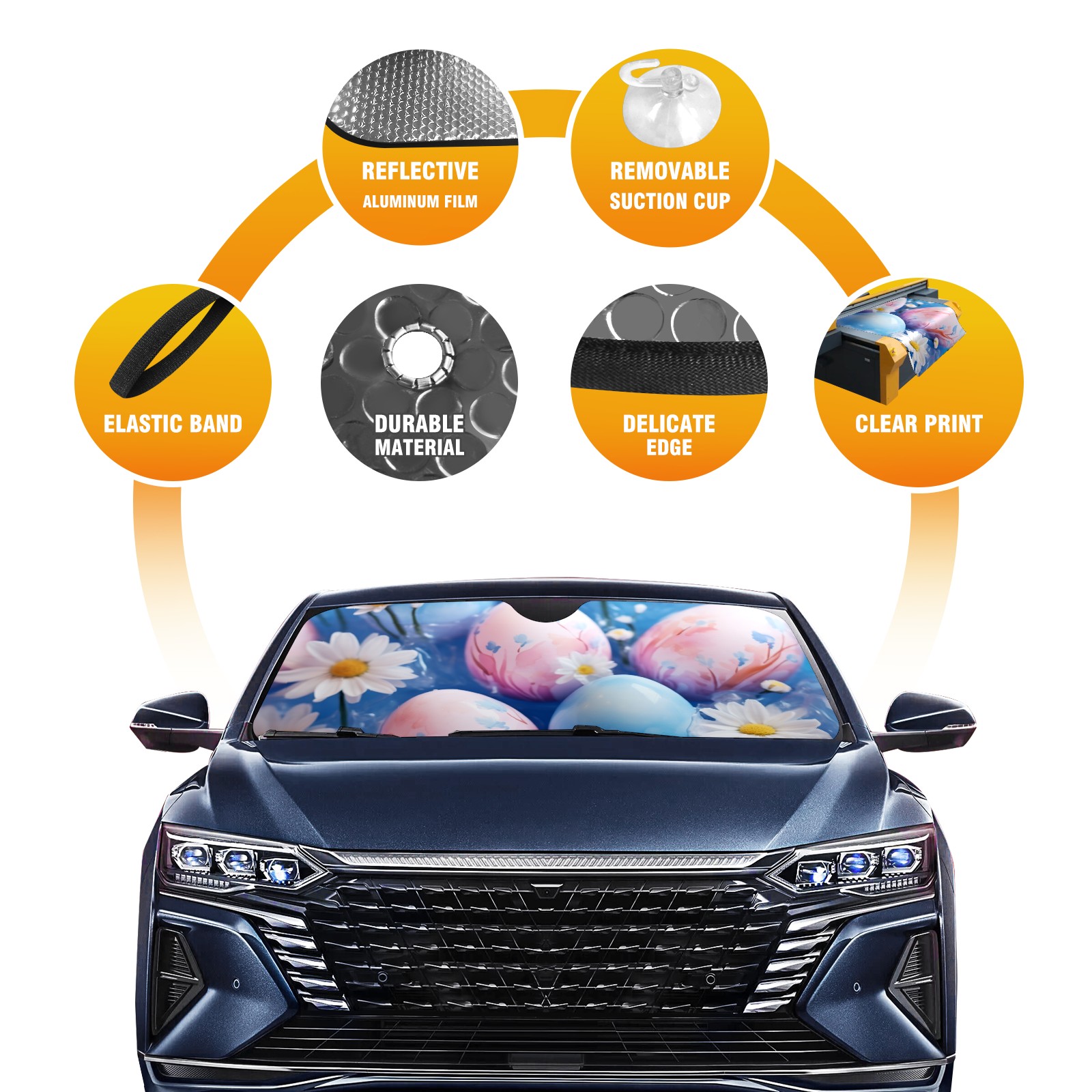 Car Windshield Sun Shade for Front Window-Easter Eggs (45) Foldable Sun Visor Cover Sunshade for Car Windshield-Car Heat Shield Sunshade Protector-Car Privacy Sun Blocker