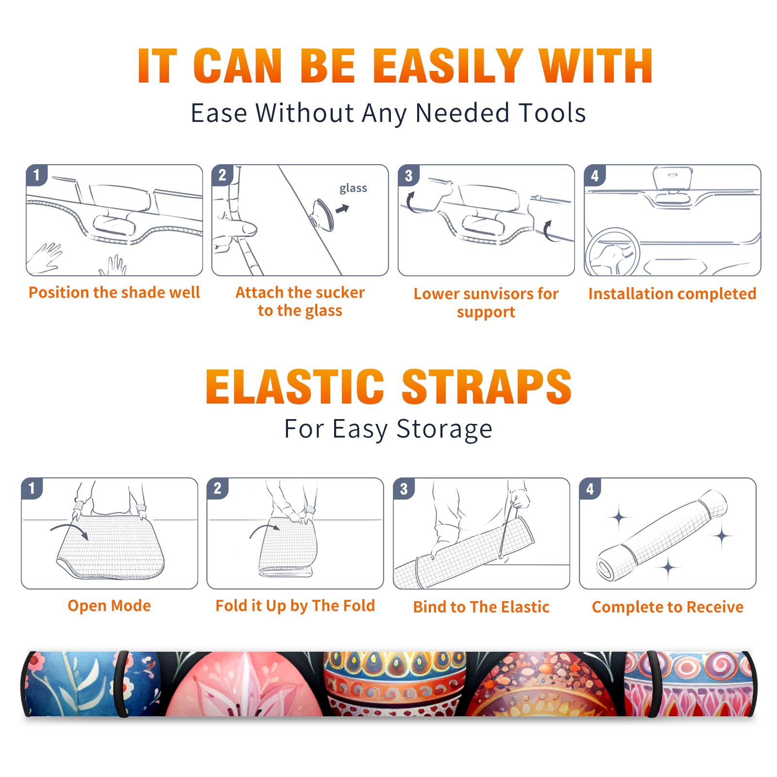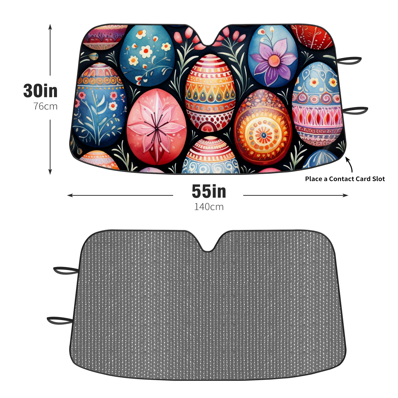 • <b>Foldable Premium Car Windshield Sunshade is your great solution to reduce your car’s interior temperature dramatically!This is definitely a must-have item for your summer travel! </b> <br> ●<b>Size: 55"L x 30"W </b> <br> ●<b>Blocking Uv Rays & Heat Insulation</b><br> Our vehicle sunshade provides effective UV, sun, and summer heat protection .Maintains dashboards by preventing fading and cracking <br> ●<b>Easy-To-Store Folding Design Makes Storage Convenient</b> <br> Car sunshades comes with removable suction cups and elastic bands that you can install or remove easily and quickly. In a matter of seconds you can install your purchased windshield visor. And the detachable suction cups on the automotive's sun visor leave no marks on the windows when removed. When not in use, the front windshield can be conveniently and effectively placed on the door pocket or the dashboard, which is beautiful and does not occupy the interior space.<br> <br> <b>Stay cool and protected this summer with our fun and functional car windshield sun shade!Perfectly crafted to fit most vehicles, this premium quality sun blocker is your go-to automotive accessory. it's time to say goodbye to scorching hot seats and hello to comfort on every drive!</b>