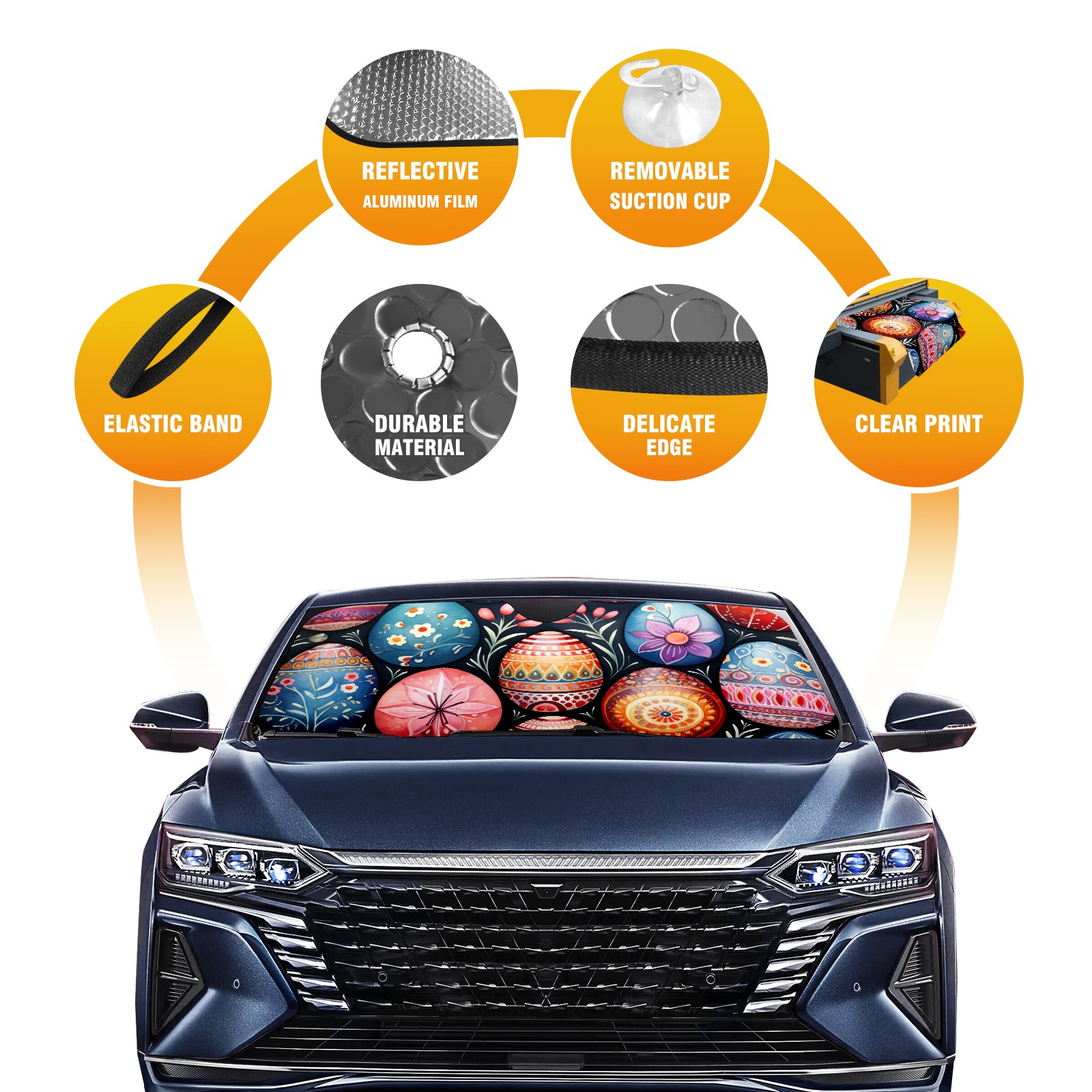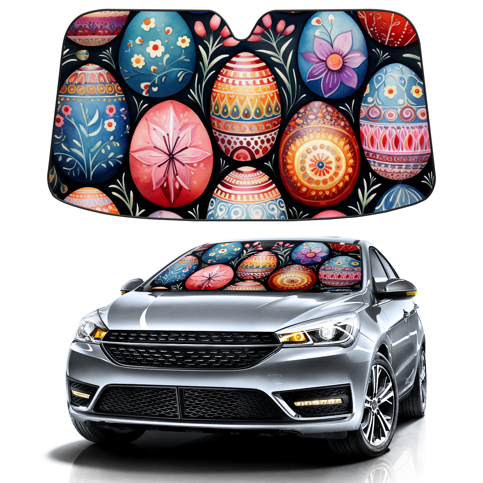 Car Windshield Sun Shade for Front Window-Easter Eggs (47) Foldable Sun Visor Cover Sunshade for Car Windshield-Car Heat Shield Sunshade Protector-Car Privacy Sun Blocker