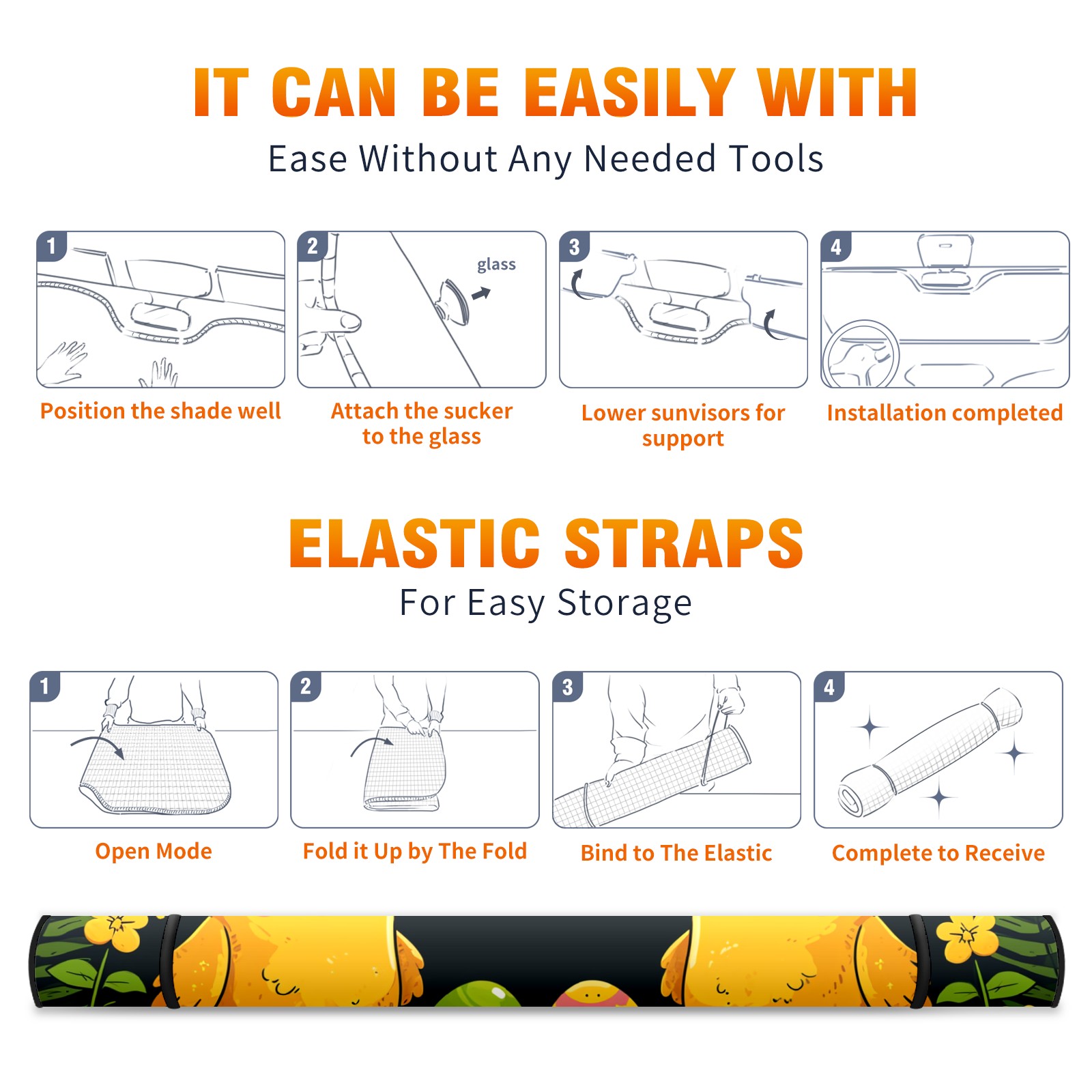 • <b>Foldable Premium Car Windshield Sunshade is your great solution to reduce your car’s interior temperature dramatically!This is definitely a must-have item for your summer travel! </b> <br> ●<b>Size: 55"L x 30"W </b> <br> ●<b>Blocking Uv Rays & Heat Insulation</b><br> Our vehicle sunshade provides effective UV, sun, and summer heat protection .Maintains dashboards by preventing fading and cracking <br> ●<b>Easy-To-Store Folding Design Makes Storage Convenient</b> <br> Car sunshades comes with removable suction cups and elastic bands that you can install or remove easily and quickly. In a matter of seconds you can install your purchased windshield visor. And the detachable suction cups on the automotive's sun visor leave no marks on the windows when removed. When not in use, the front windshield can be conveniently and effectively placed on the door pocket or the dashboard, which is beautiful and does not occupy the interior space.<br> <br> <b>Stay cool and protected this summer with our fun and functional car windshield sun shade!Perfectly crafted to fit most vehicles, this premium quality sun blocker is your go-to automotive accessory. it's time to say goodbye to scorching hot seats and hello to comfort on every drive!</b>