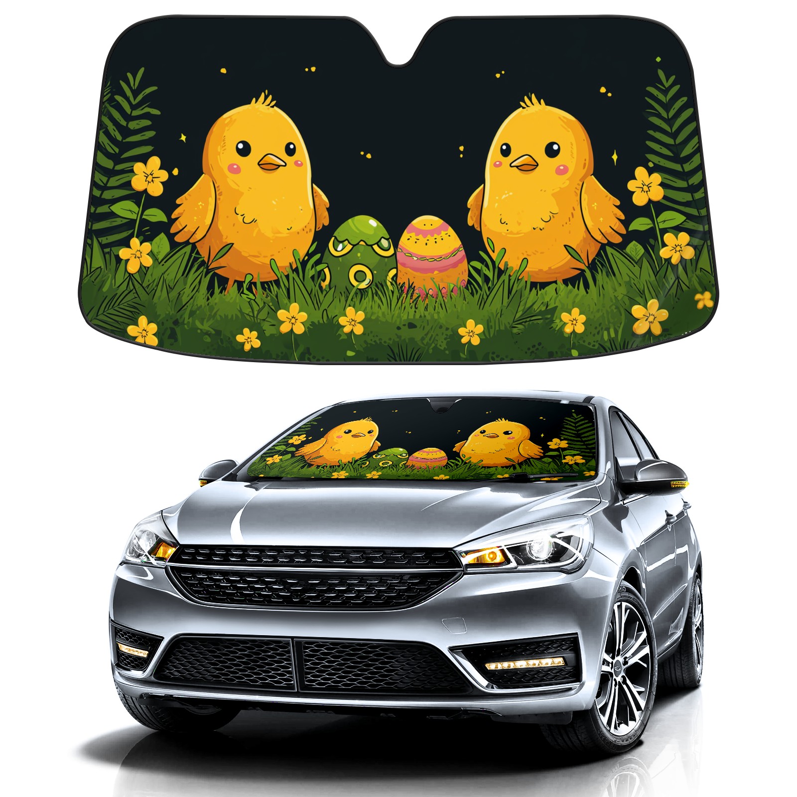 Car Windshield Sun Shade for Front Window-Easter Chick(9) Foldable Sun Visor Cover Sunshade for Car Windshield-Car Heat Shield Sunshade Protector-Car Privacy Sun Blocker