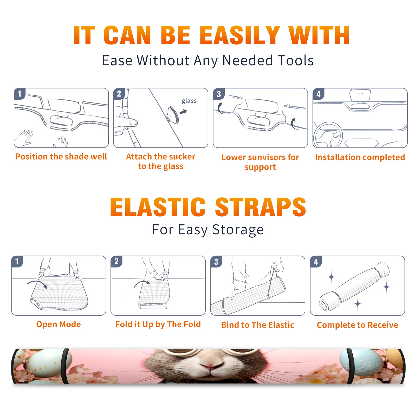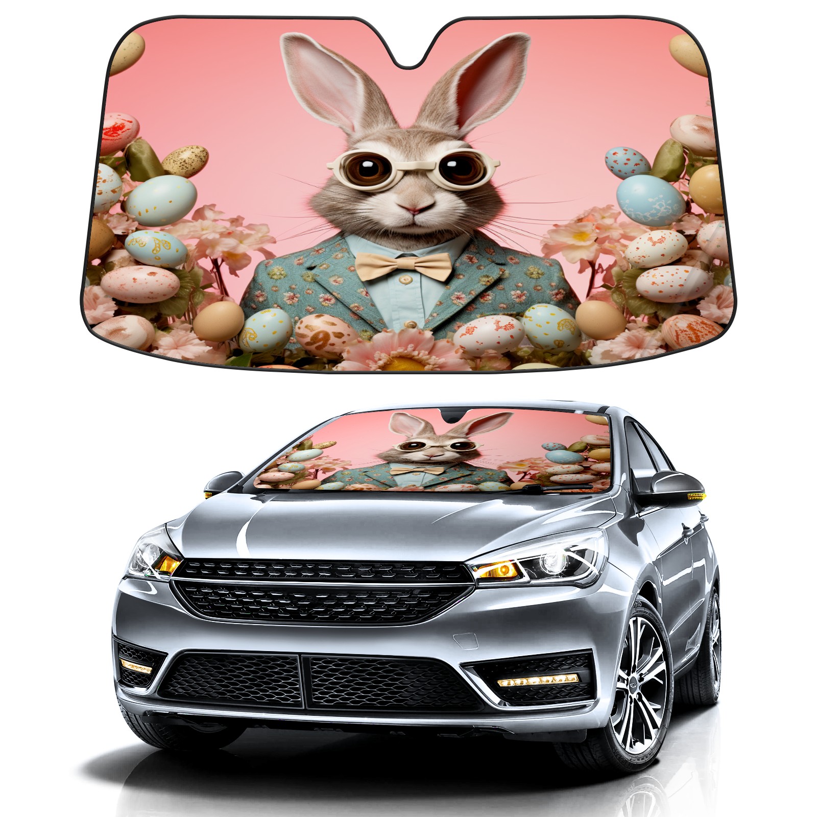 Car Windshield Sun Shade for Front Window-Easter Bunny (175) Foldable Sun Visor Cover Sunshade for Car Windshield-Car Heat Shield Sunshade Protector-Car Privacy Sun Blocker