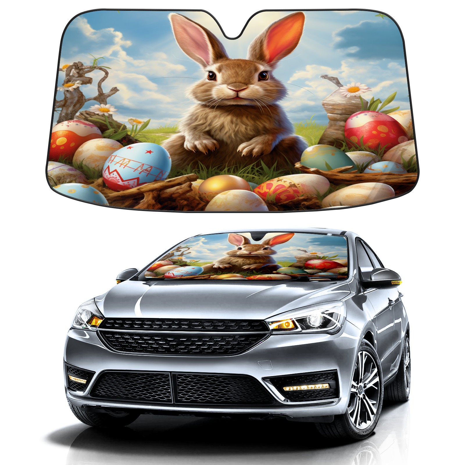 Car Windshield Sun Shade for Front Window-Easter Bunny (29) Foldable Sun Visor Cover Sunshade for Car Windshield-Car Heat Shield Sunshade Protector-Car Privacy Sun Blocker