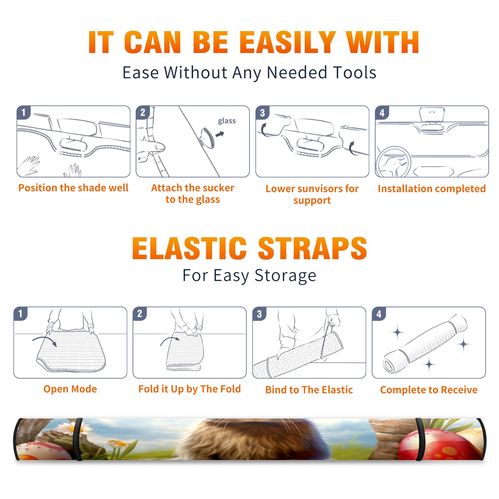 • <b>Foldable Premium Car Windshield Sunshade is your great solution to reduce your car’s interior temperature dramatically!This is definitely a must-have item for your summer travel! </b> <br> ●<b>Size: 55"L x 30"W </b> <br> ●<b>Blocking Uv Rays & Heat Insulation</b><br> Our vehicle sunshade provides effective UV, sun, and summer heat protection .Maintains dashboards by preventing fading and cracking <br> ●<b>Easy-To-Store Folding Design Makes Storage Convenient</b> <br> Car sunshades comes with removable suction cups and elastic bands that you can install or remove easily and quickly. In a matter of seconds you can install your purchased windshield visor. And the detachable suction cups on the automotive's sun visor leave no marks on the windows when removed. When not in use, the front windshield can be conveniently and effectively placed on the door pocket or the dashboard, which is beautiful and does not occupy the interior space.<br> <br> <b>Stay cool and protected this summer with our fun and functional car windshield sun shade!Perfectly crafted to fit most vehicles, this premium quality sun blocker is your go-to automotive accessory. it's time to say goodbye to scorching hot seats and hello to comfort on every drive!</b>