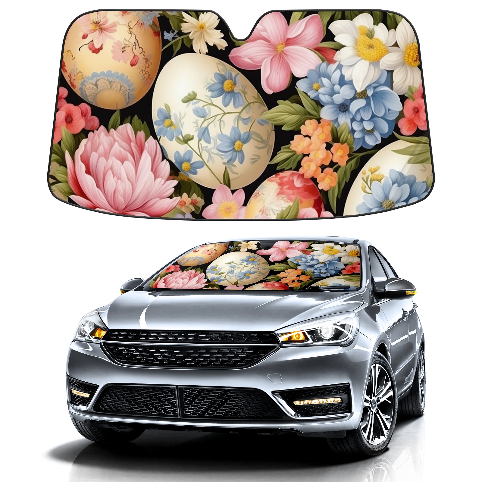 Car Windshield Sun Shade for Front Window-Easter (198) Foldable Sun Visor Cover Sunshade for Car Windshield-Car Heat Shield Sunshade Protector-Car Privacy Sun Blocker