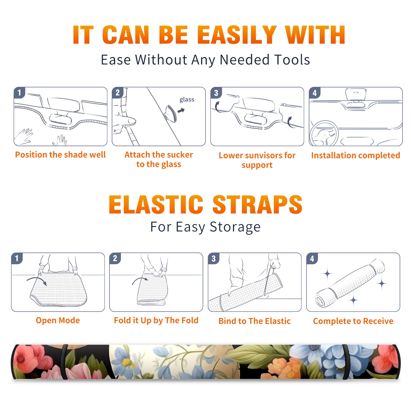 <b>Foldable Premium Car Windshield Sunshade is your great solution to reduce your car’s interior temperature dramatically!This is definitely a must-have item for your summer travel! </b> <br> ●<b>Size: 55"L x 30"W </b> <br> ●<b>Blocking Uv Rays & Heat Insulation</b><br> Our vehicle sunshade provides effective UV, sun, and summer heat protection .Maintains dashboards by preventing fading and cracking <br> ●<b>Easy-To-Store Folding Design Makes Storage Convenient</b> <br> Car sunshades comes with removable suction cups and elastic bands that you can install or remove easily and quickly. In a matter of seconds you can install your purchased windshield visor. And the detachable suction cups on the automotive's sun visor leave no marks on the windows when removed. When not in use, the front windshield can be conveniently and effectively placed on the door pocket or the dashboard, which is beautiful and does not occupy the interior space.<br> <br> <b>Stay cool and protected this summer with our fun and functional car windshield sun shade!Perfectly crafted to fit most vehicles, this premium quality sun blocker is your go-to automotive accessory. it's time to say goodbye to scorching hot seats and hello to comfort on every drive!</b>