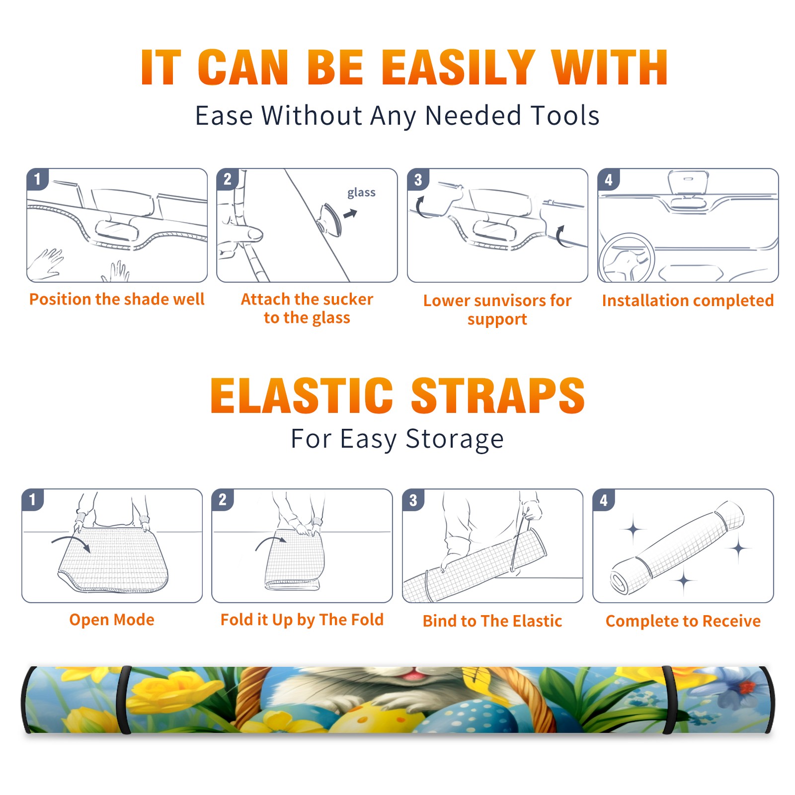 Car Windshield Sun Shade for Front Window-Easter158 Foldable Sun Visor Cover Sunshade for Car Windshield-Car Heat Shield Sunshade Protector-Car Privacy Sun Blocker