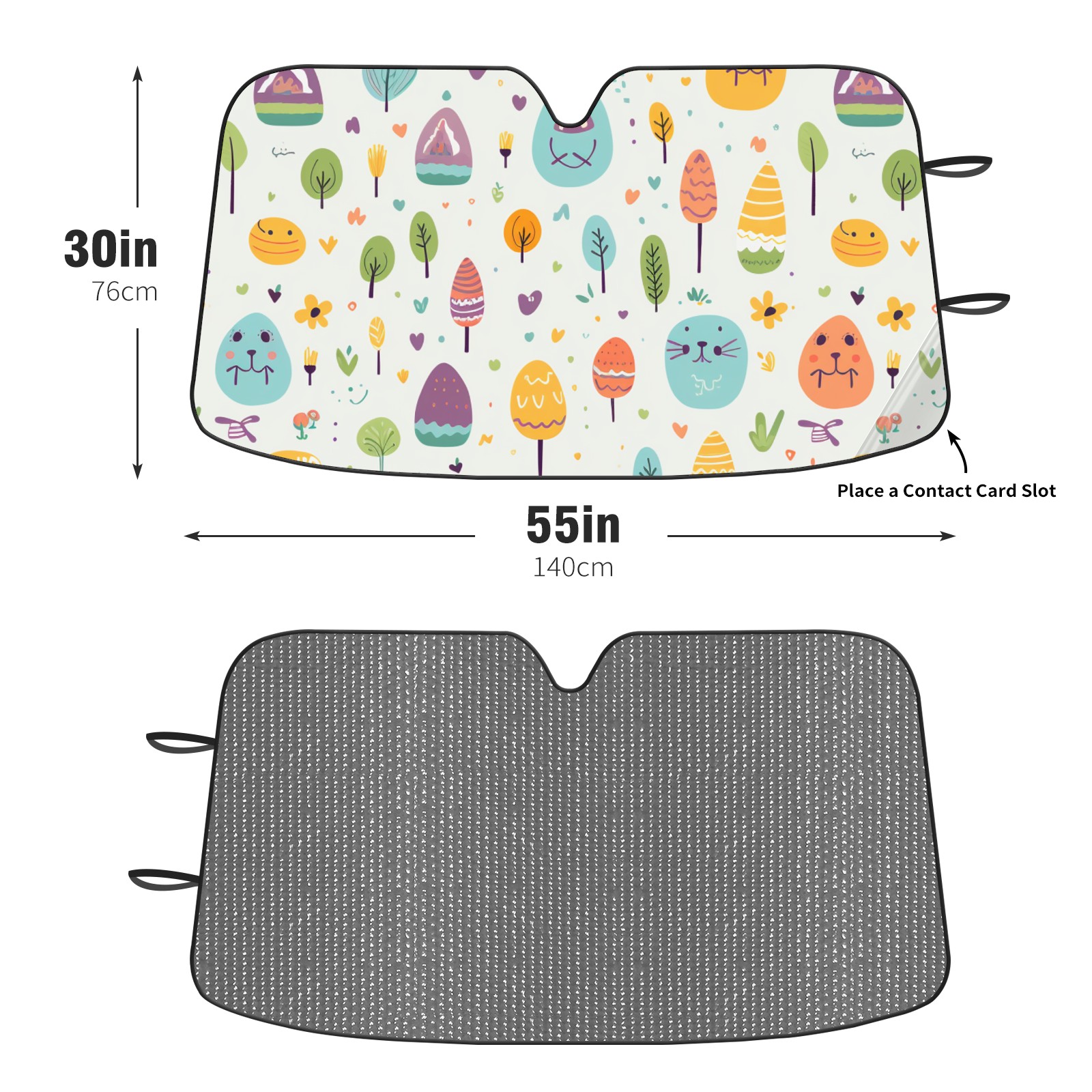 • <b>Foldable Premium Car Windshield Sunshade is your great solution to reduce your car’s interior temperature dramatically!This is definitely a must-have item for your summer travel! </b> <br> ●<b>Size: 55"L x 30"W </b> <br> ●<b>Blocking Uv Rays & Heat Insulation</b><br> Our vehicle sunshade provides effective UV, sun, and summer heat protection .Maintains dashboards by preventing fading and cracking <br> ●<b>Easy-To-Store Folding Design Makes Storage Convenient</b> <br> Car sunshades comes with removable suction cups and elastic bands that you can install or remove easily and quickly. In a matter of seconds you can install your purchased windshield visor. And the detachable suction cups on the automotive's sun visor leave no marks on the windows when removed. When not in use, the front windshield can be conveniently and effectively placed on the door pocket or the dashboard, which is beautiful and does not occupy the interior space.<br> <br> <b>Stay cool and protected this summer with our fun and functional car windshield sun shade!Perfectly crafted to fit most vehicles, this premium quality sun blocker is your go-to automotive accessory. it's time to say goodbye to scorching hot seats and hello to comfort on every drive!</b>