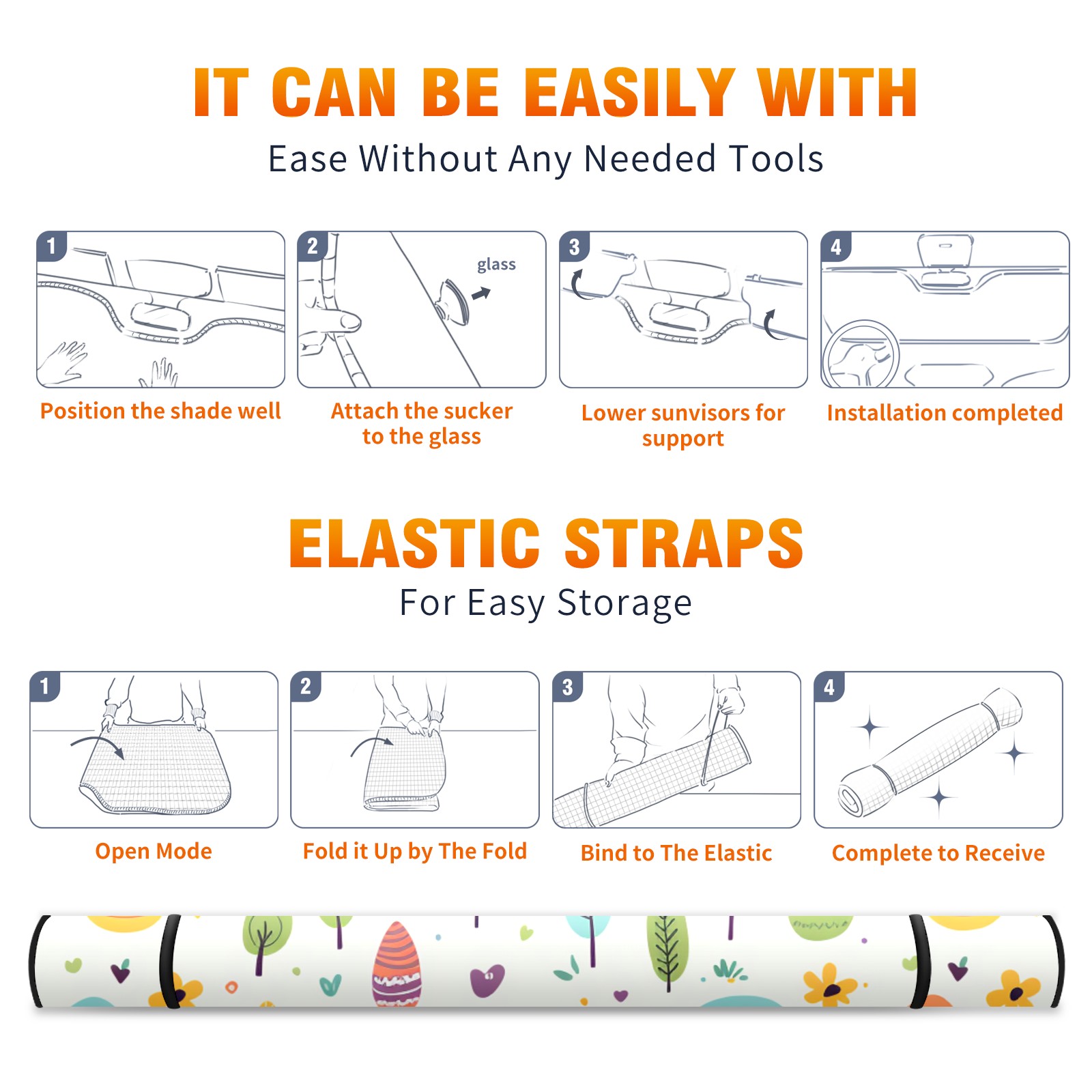 Car Windshield Sun Shade for Front Window-Easter116 Foldable Sun Visor Cover Sunshade for Car Windshield-Car Heat Shield Sunshade Protector-Car Privacy Sun Blocker