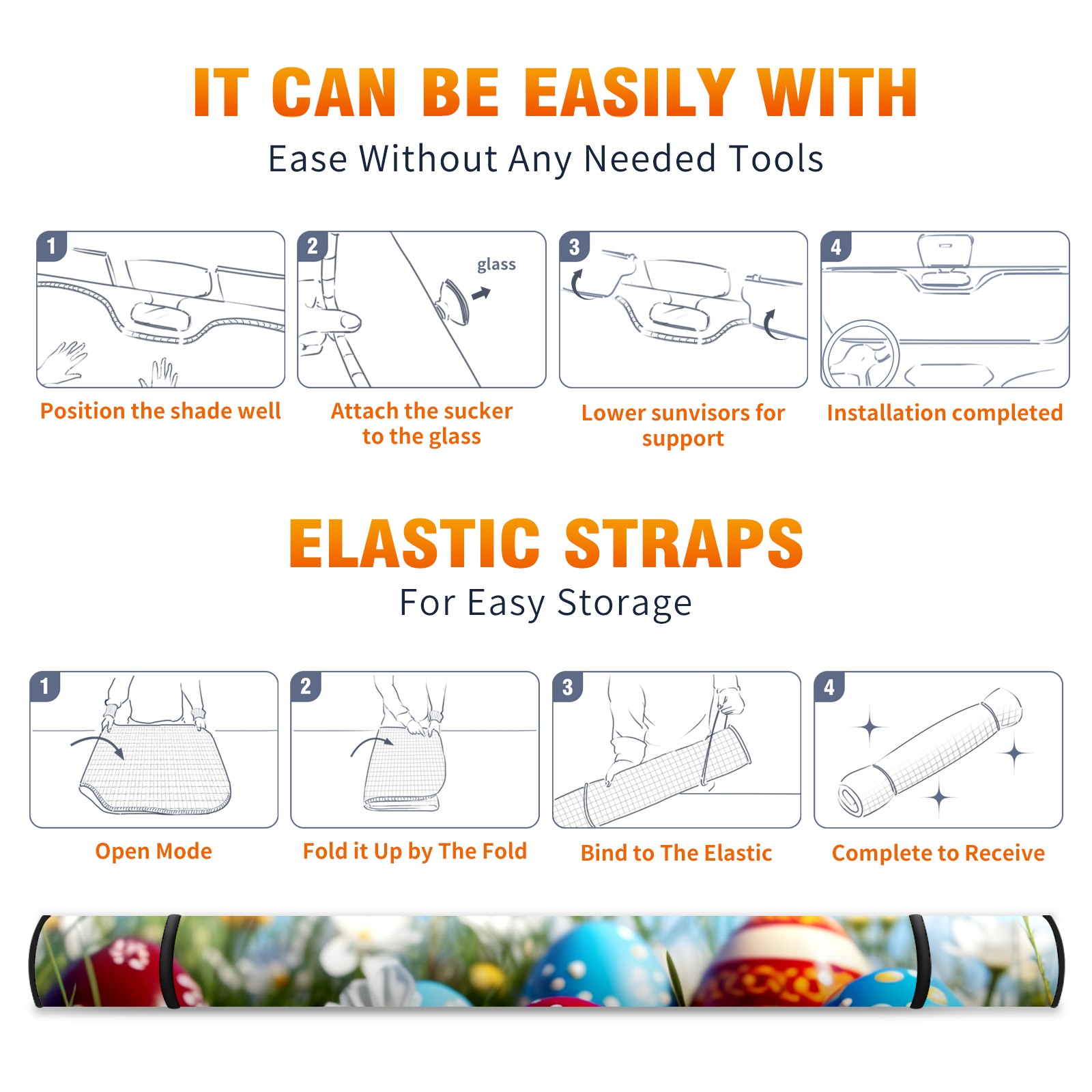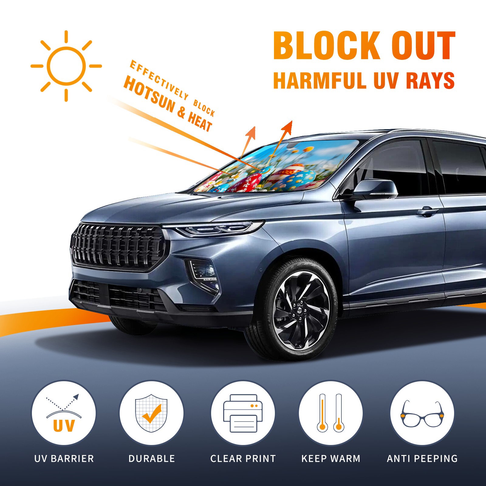Car Windshield Sun Shade for Front Window-Easter29 Foldable Sun Visor Cover Sunshade for Car Windshield-Car Heat Shield Sunshade Protector-Car Privacy Sun Blocker