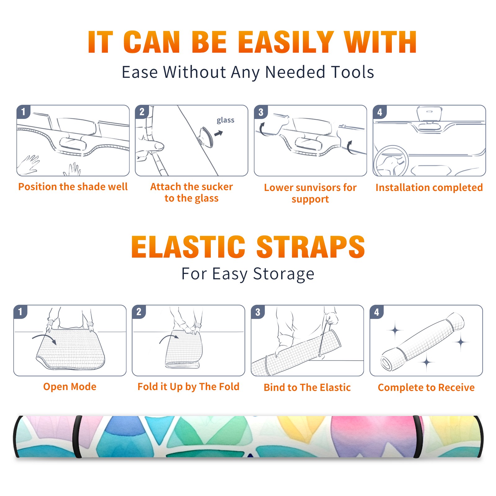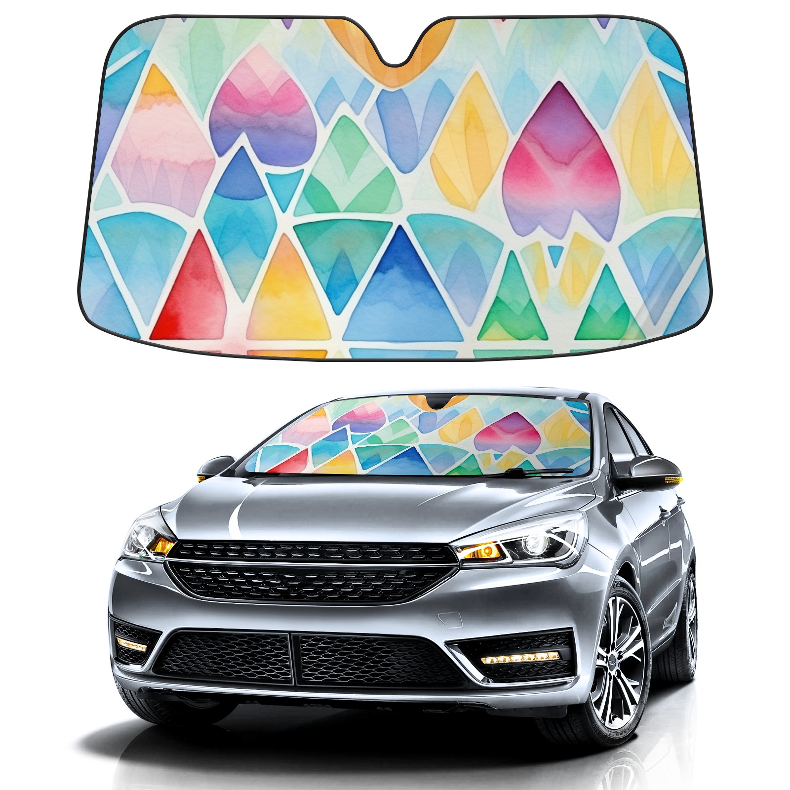 • <b>Foldable Premium Car Windshield Sunshade is your great solution to reduce your car’s interior temperature dramatically!This is definitely a must-have item for your summer travel! </b> <br> ●<b>Size: 55"L x 30"W </b> <br> ●<b>Blocking Uv Rays & Heat Insulation</b><br> Our vehicle sunshade provides effective UV, sun, and summer heat protection .Maintains dashboards by preventing fading and cracking <br> ●<b>Easy-To-Store Folding Design Makes Storage Convenient</b> <br> Car sunshades comes with removable suction cups and elastic bands that you can install or remove easily and quickly. In a matter of seconds you can install your purchased windshield visor. And the detachable suction cups on the automotive's sun visor leave no marks on the windows when removed. When not in use, the front windshield can be conveniently and effectively placed on the door pocket or the dashboard, which is beautiful and does not occupy the interior space.<br> <br> <b>Stay cool and protected this summer with our fun and functional car windshield sun shade!Perfectly crafted to fit most vehicles, this premium quality sun blocker is your go-to automotive accessory. it's time to say goodbye to scorching hot seats and hello to comfort on every drive!</b>