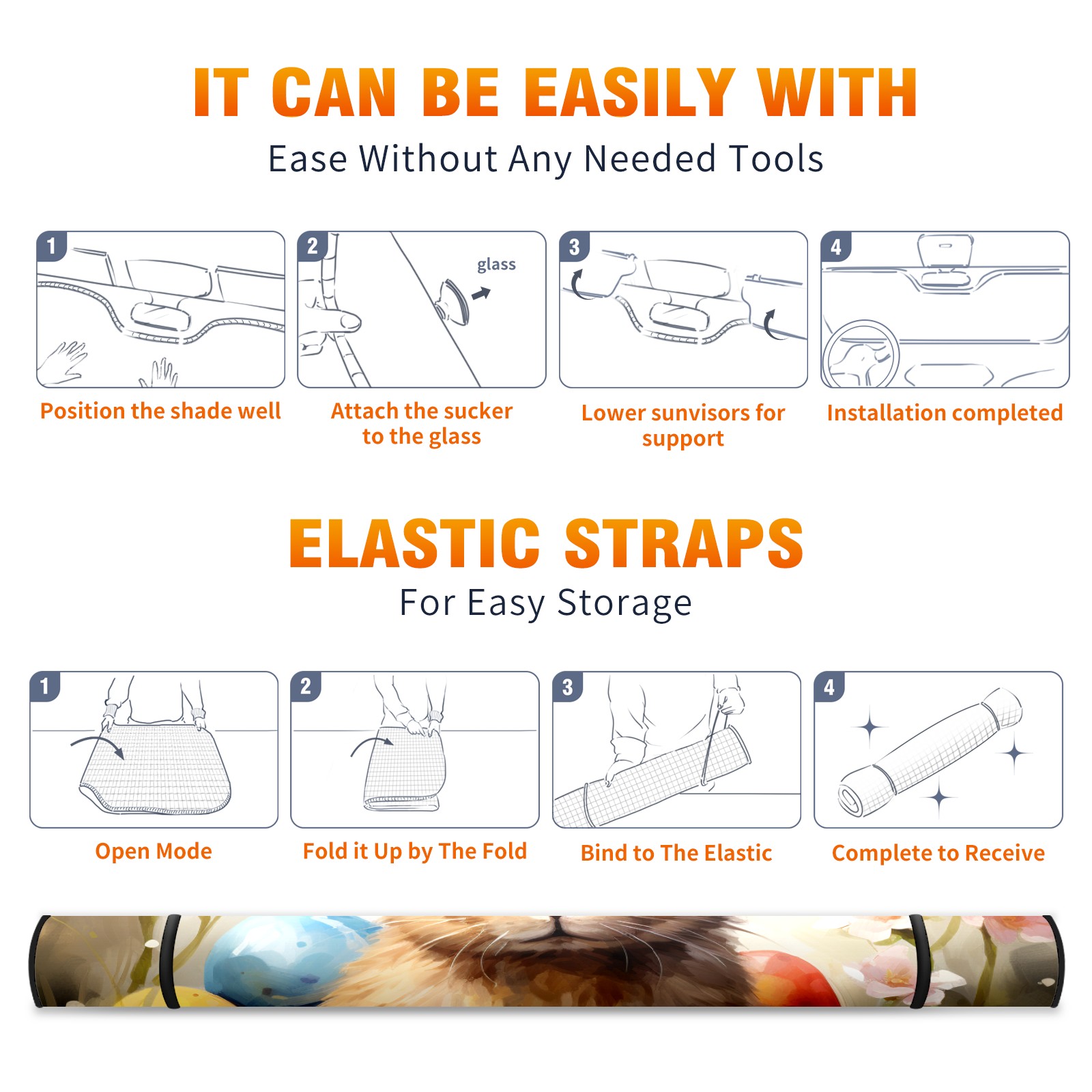 Car Windshield Sun Shade for Front Window-Easter (96) Foldable Sun Visor Cover Sunshade for Car Windshield-Car Heat Shield Sunshade Protector-Car Privacy Sun Blocker