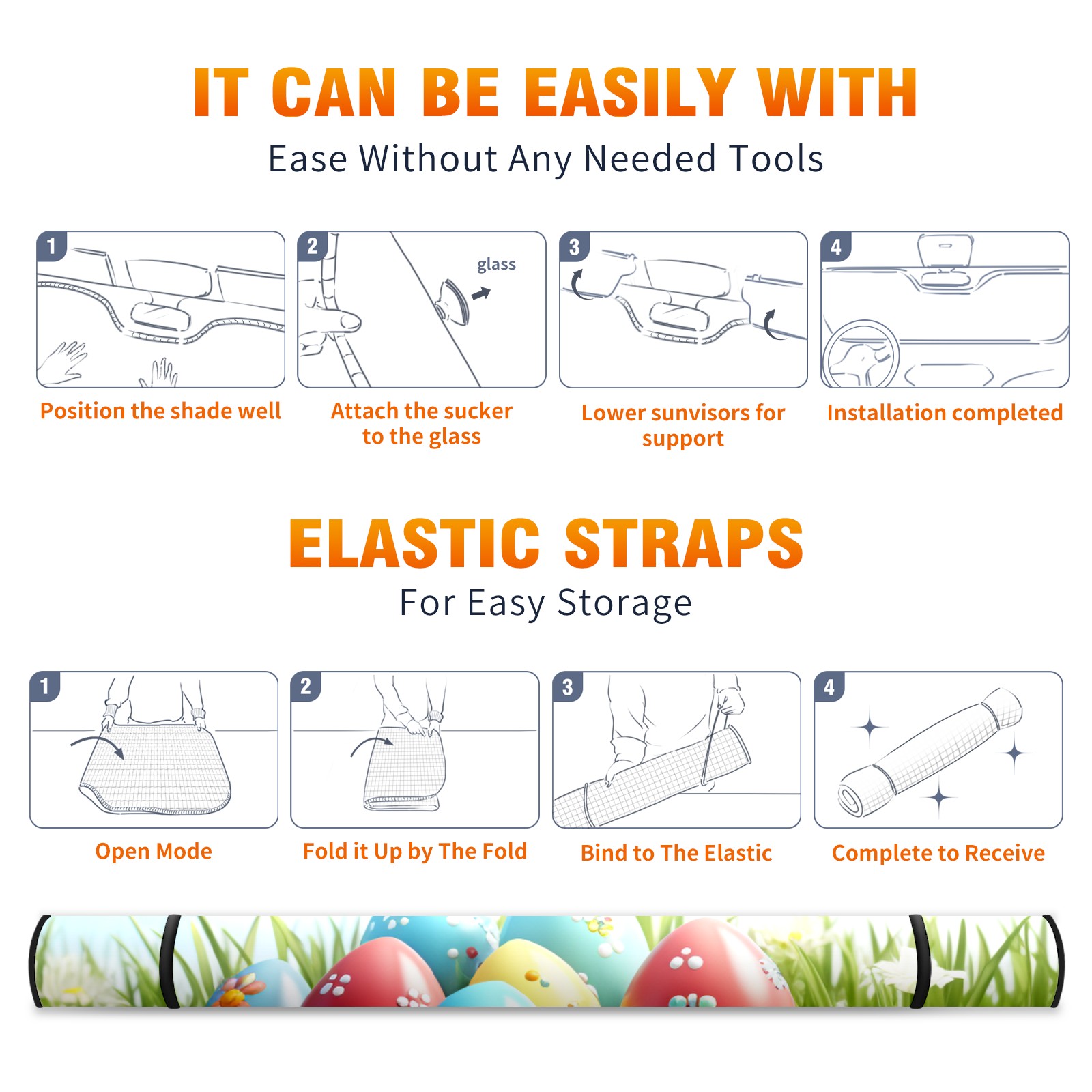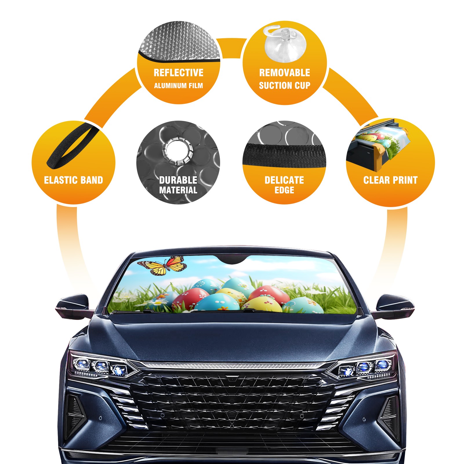 Car Windshield Sun Shade for Front Window-Easter (142) Foldable Sun Visor Cover Sunshade for Car Windshield-Car Heat Shield Sunshade Protector-Car Privacy Sun Blocker