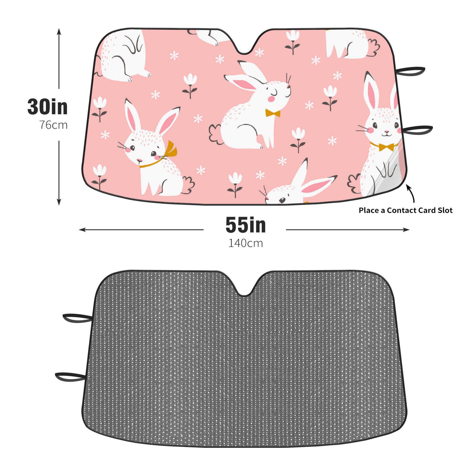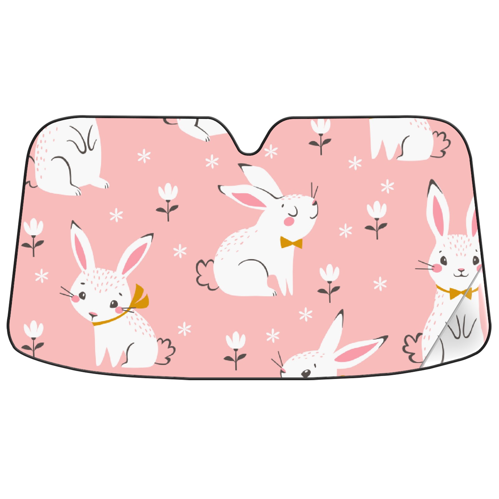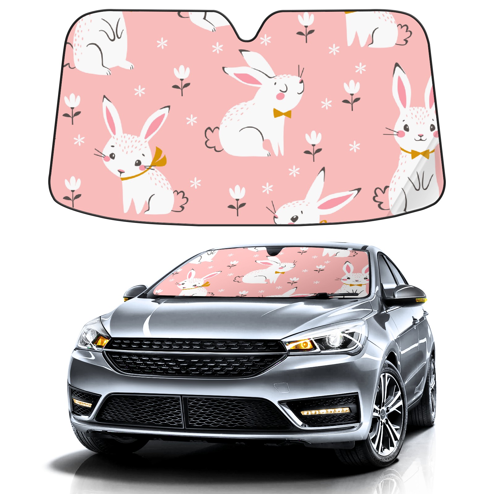 Car Windshield Sun Shade for Front Window-Pink Easter Bunny Foldable Sun Visor Cover Sunshade for Car Windshield-Car Heat Shield Sunshade Protector-Car Privacy Sun Blocker