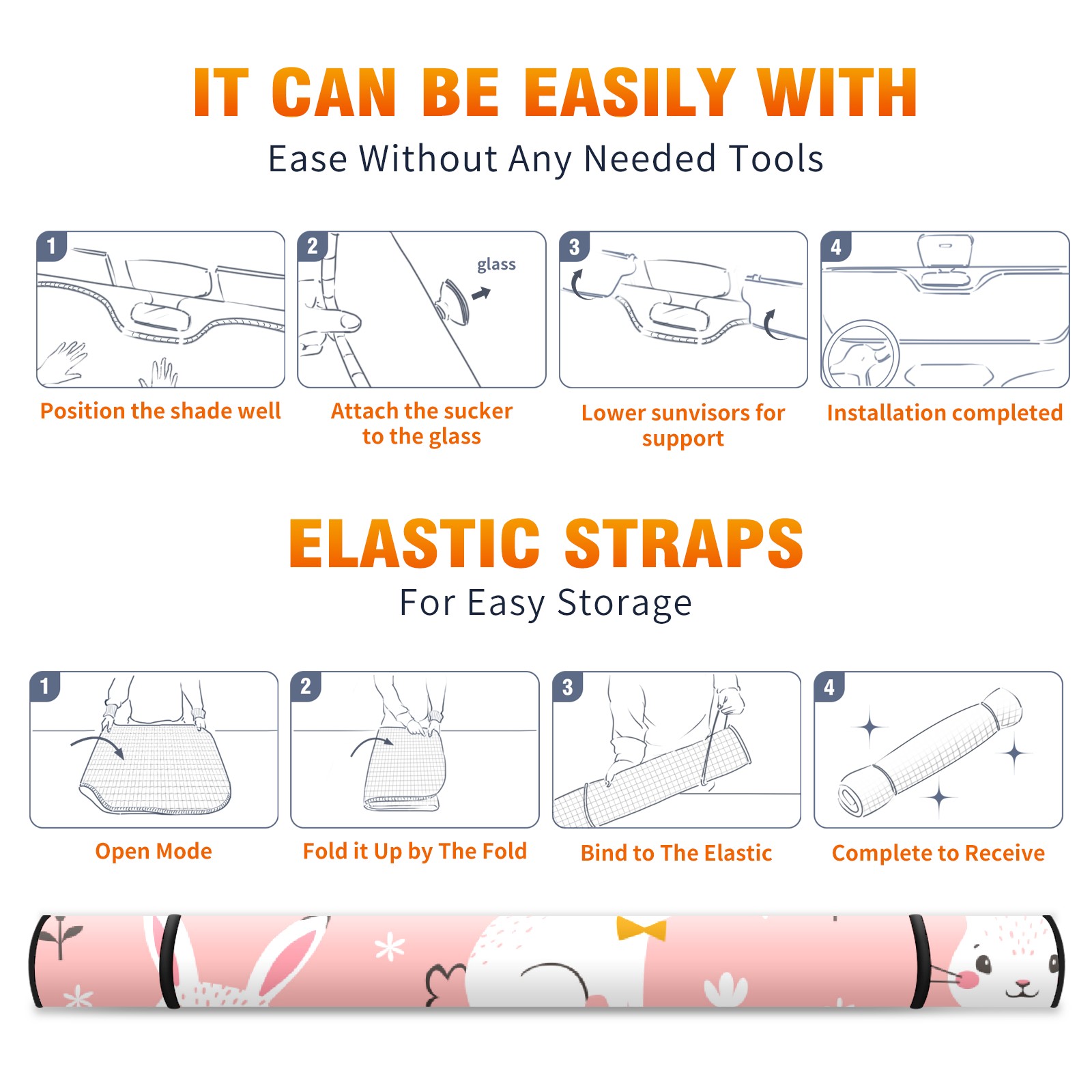<b>Foldable Premium Car Windshield Sunshade is your great solution to reduce your car’s interior temperature dramatically!This is definitely a must-have item for your summer travel! </b> <br> ●<b>Size: 55"L x 30"W </b> <br> ●<b>Blocking Uv Rays & Heat Insulation</b><br> Our vehicle sunshade provides effective UV, sun, and summer heat protection .Maintains dashboards by preventing fading and cracking <br> ●<b>Easy-To-Store Folding Design Makes Storage Convenient</b> <br> Car sunshades comes with removable suction cups and elastic bands that you can install or remove easily and quickly. In a matter of seconds you can install your purchased windshield visor. And the detachable suction cups on the automotive's sun visor leave no marks on the windows when removed. When not in use, the front windshield can be conveniently and effectively placed on the door pocket or the dashboard, which is beautiful and does not occupy the interior space.<br> <br> <b>Stay cool and protected this summer with our fun and functional car windshield sun shade!Perfectly crafted to fit most vehicles, this premium quality sun blocker is your go-to automotive accessory. it's time to say goodbye to scorching hot seats and hello to comfort on every drive!</b>