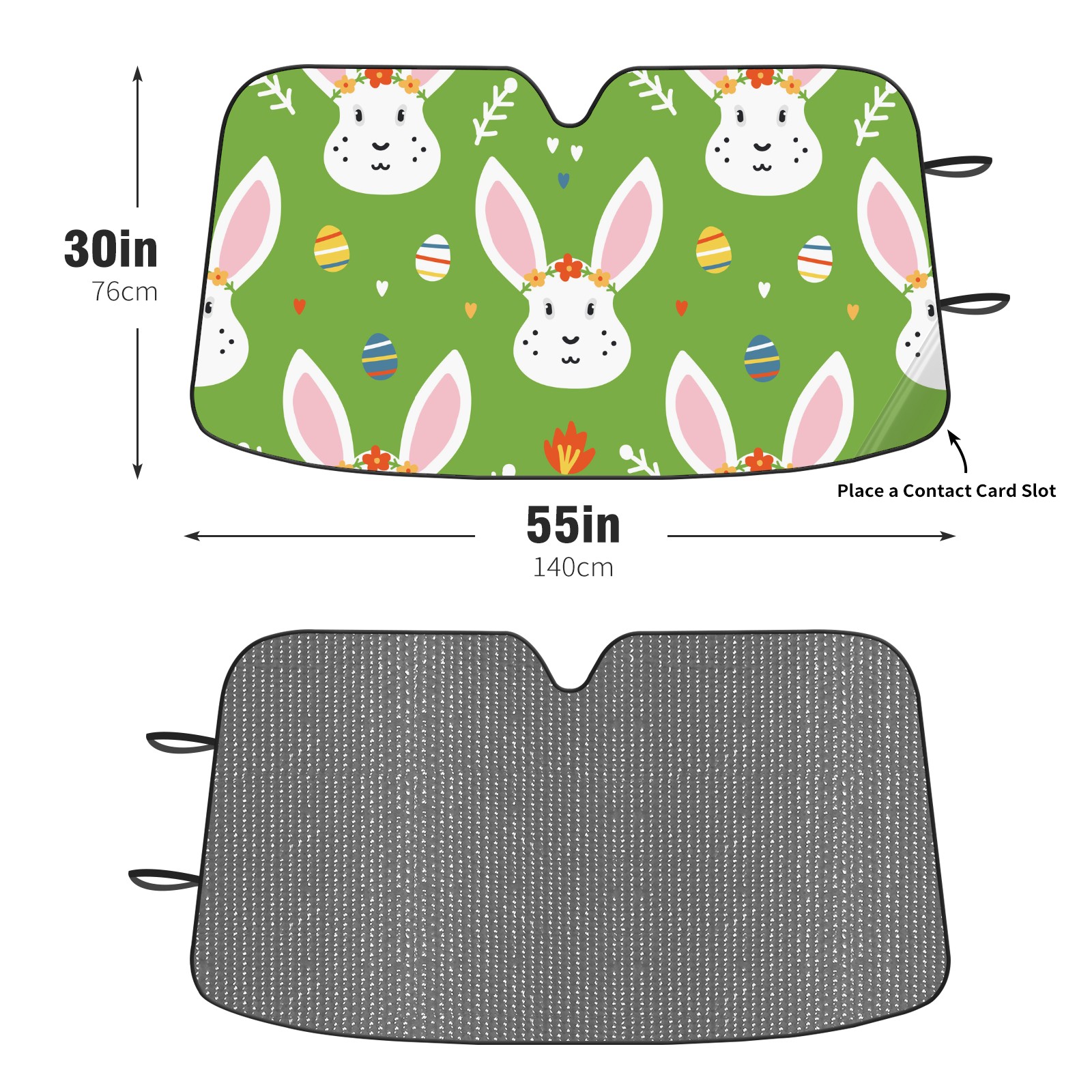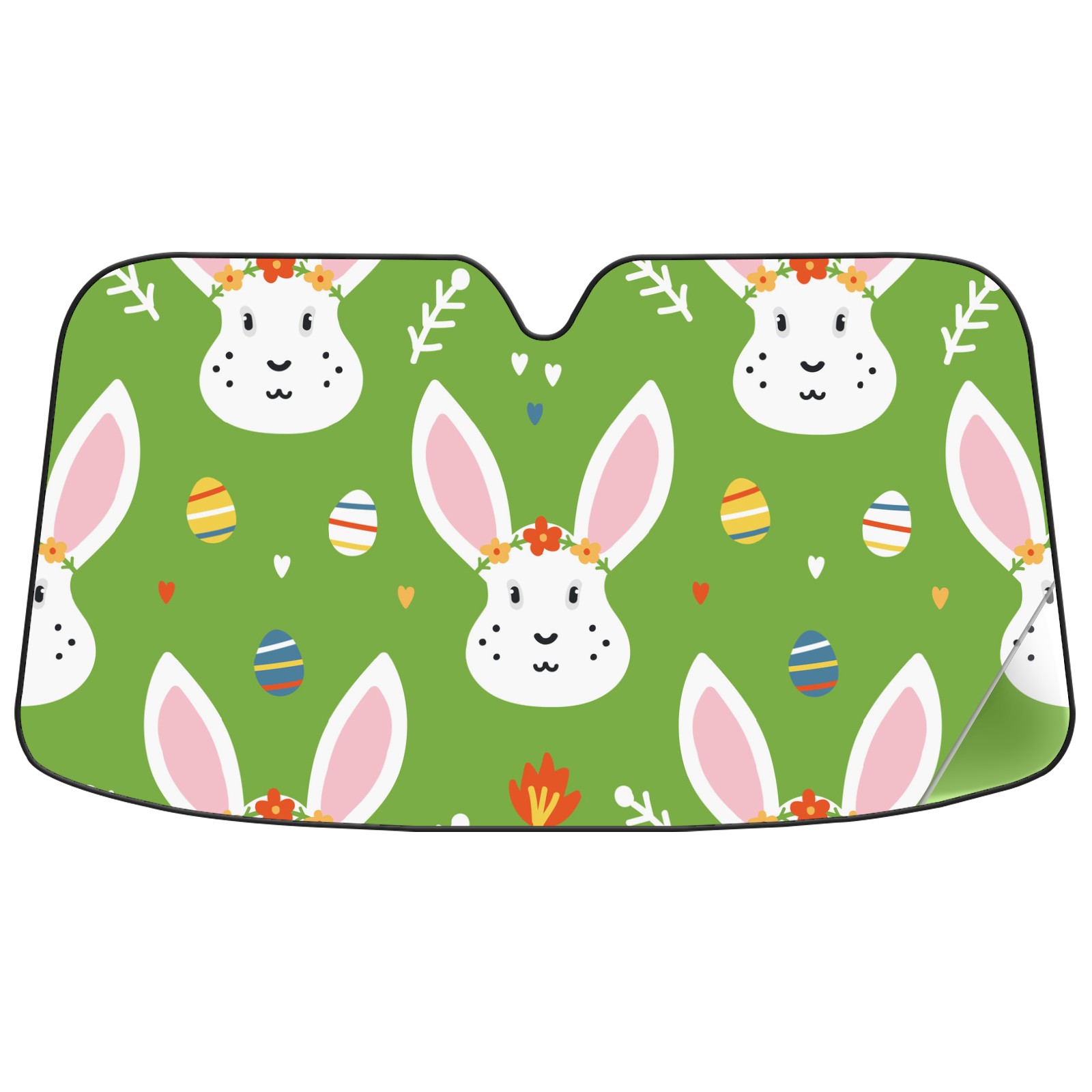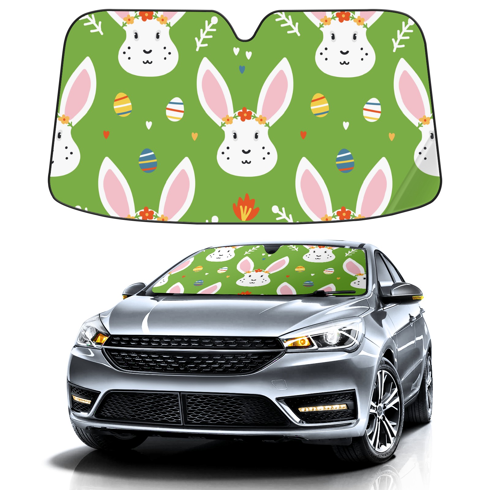 Car Windshield Sun Shade for Front Window-Easter Bunny Eggs Head Leaves Crown Green Foldable Sun Visor Cover Sunshade for Car Windshield-Car Heat Shield Sunshade Protector-Car Privacy Sun Blocker
