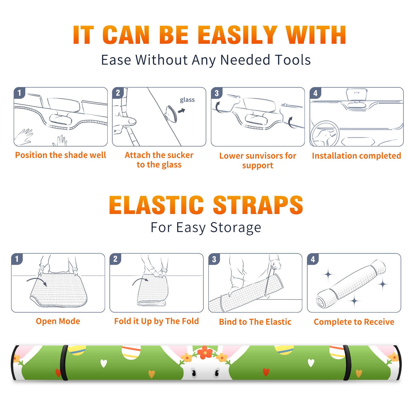 • <b>Foldable Premium Car Windshield Sunshade is your great solution to reduce your car’s interior temperature dramatically!This is definitely a must-have item for your summer travel! </b> <br> ●<b>Size: 55"L x 30"W </b> <br> ●<b>Blocking Uv Rays & Heat Insulation</b><br> Our vehicle sunshade provides effective UV, sun, and summer heat protection .Maintains dashboards by preventing fading and cracking <br> ●<b>Easy-To-Store Folding Design Makes Storage Convenient</b> <br> Car sunshades comes with removable suction cups and elastic bands that you can install or remove easily and quickly. In a matter of seconds you can install your purchased windshield visor. And the detachable suction cups on the automotive's sun visor leave no marks on the windows when removed. When not in use, the front windshield can be conveniently and effectively placed on the door pocket or the dashboard, which is beautiful and does not occupy the interior space.<br> <br> <b>Stay cool and protected this summer with our fun and functional car windshield sun shade!Perfectly crafted to fit most vehicles, this premium quality sun blocker is your go-to automotive accessory. it's time to say goodbye to scorching hot seats and hello to comfort on every drive!</b>