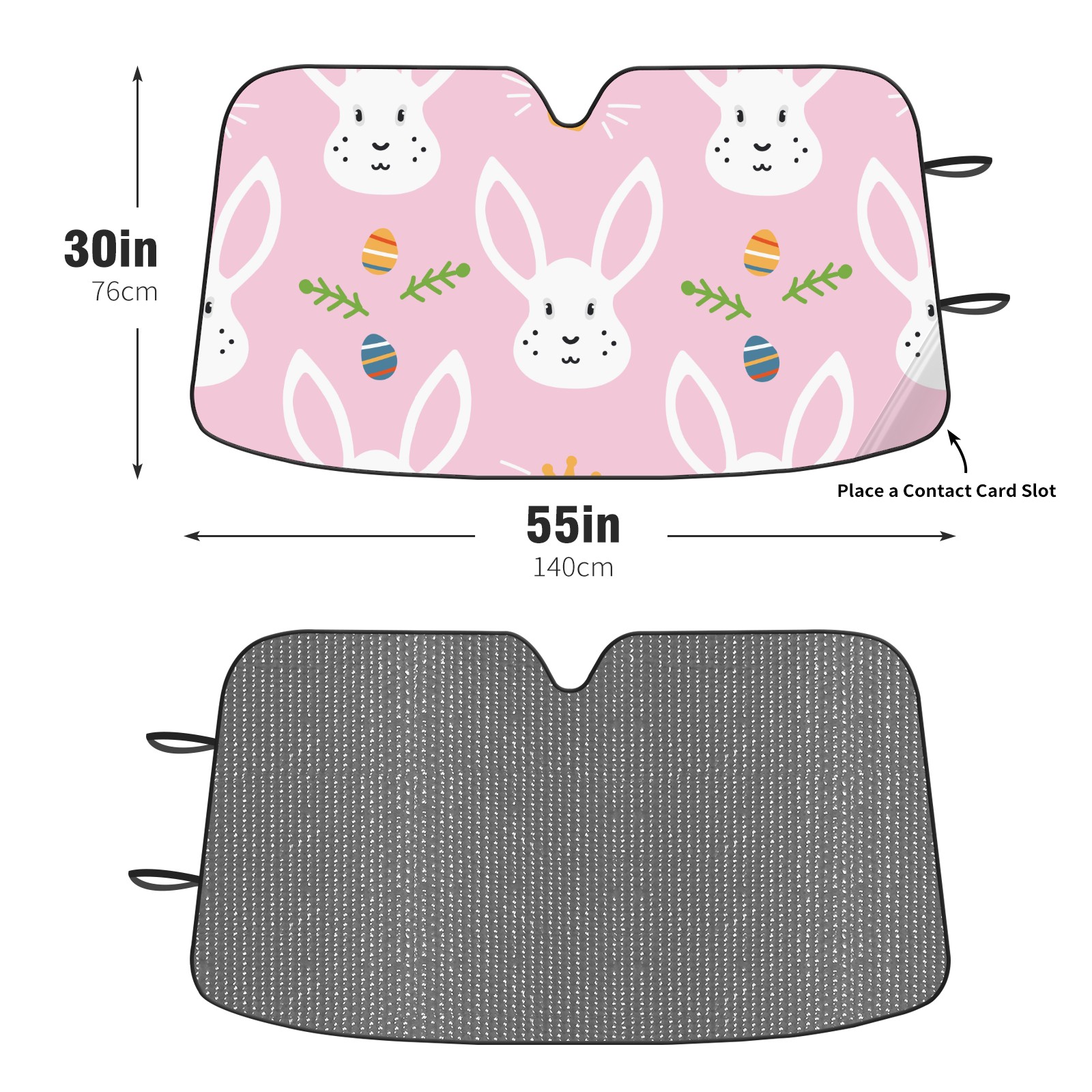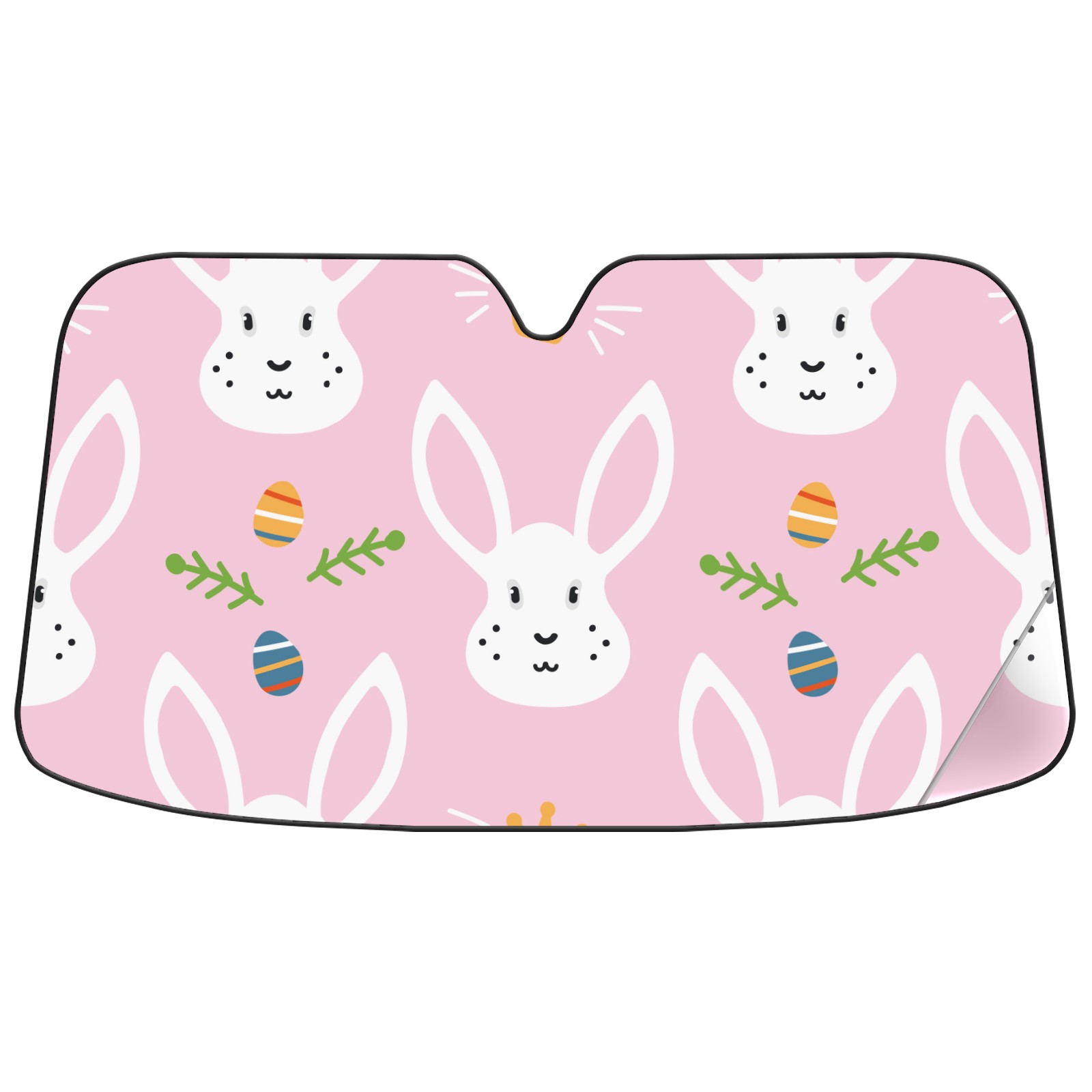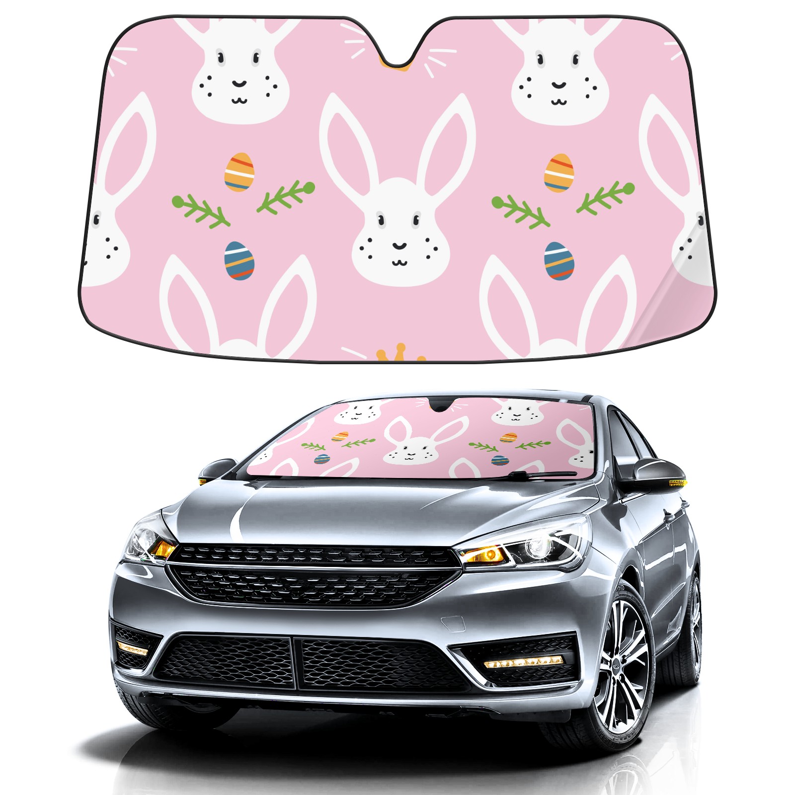 Car Windshield Sun Shade for Front Window-Easter Bunny Eggs Crown Pink Foldable Sun Visor Cover Sunshade for Car Windshield-Car Heat Shield Sunshade Protector-Car Privacy Sun Blocker