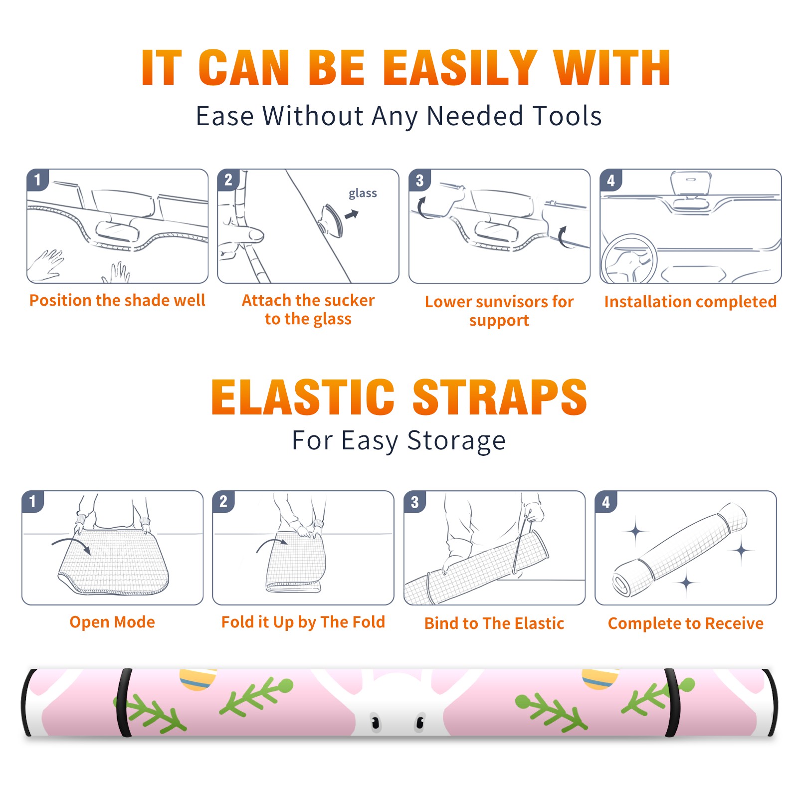 • <b>Foldable Premium Car Windshield Sunshade is your great solution to reduce your car’s interior temperature dramatically!This is definitely a must-have item for your summer travel! </b> <br> ●<b>Size: 55"L x 30"W </b> <br> ●<b>Blocking Uv Rays & Heat Insulation</b><br> Our vehicle sunshade provides effective UV, sun, and summer heat protection .Maintains dashboards by preventing fading and cracking <br> ●<b>Easy-To-Store Folding Design Makes Storage Convenient</b> <br> Car sunshades comes with removable suction cups and elastic bands that you can install or remove easily and quickly. In a matter of seconds you can install your purchased windshield visor. And the detachable suction cups on the automotive's sun visor leave no marks on the windows when removed. When not in use, the front windshield can be conveniently and effectively placed on the door pocket or the dashboard, which is beautiful and does not occupy the interior space.<br> <br> <b>Stay cool and protected this summer with our fun and functional car windshield sun shade!Perfectly crafted to fit most vehicles, this premium quality sun blocker is your go-to automotive accessory. it's time to say goodbye to scorching hot seats and hello to comfort on every drive!</b>