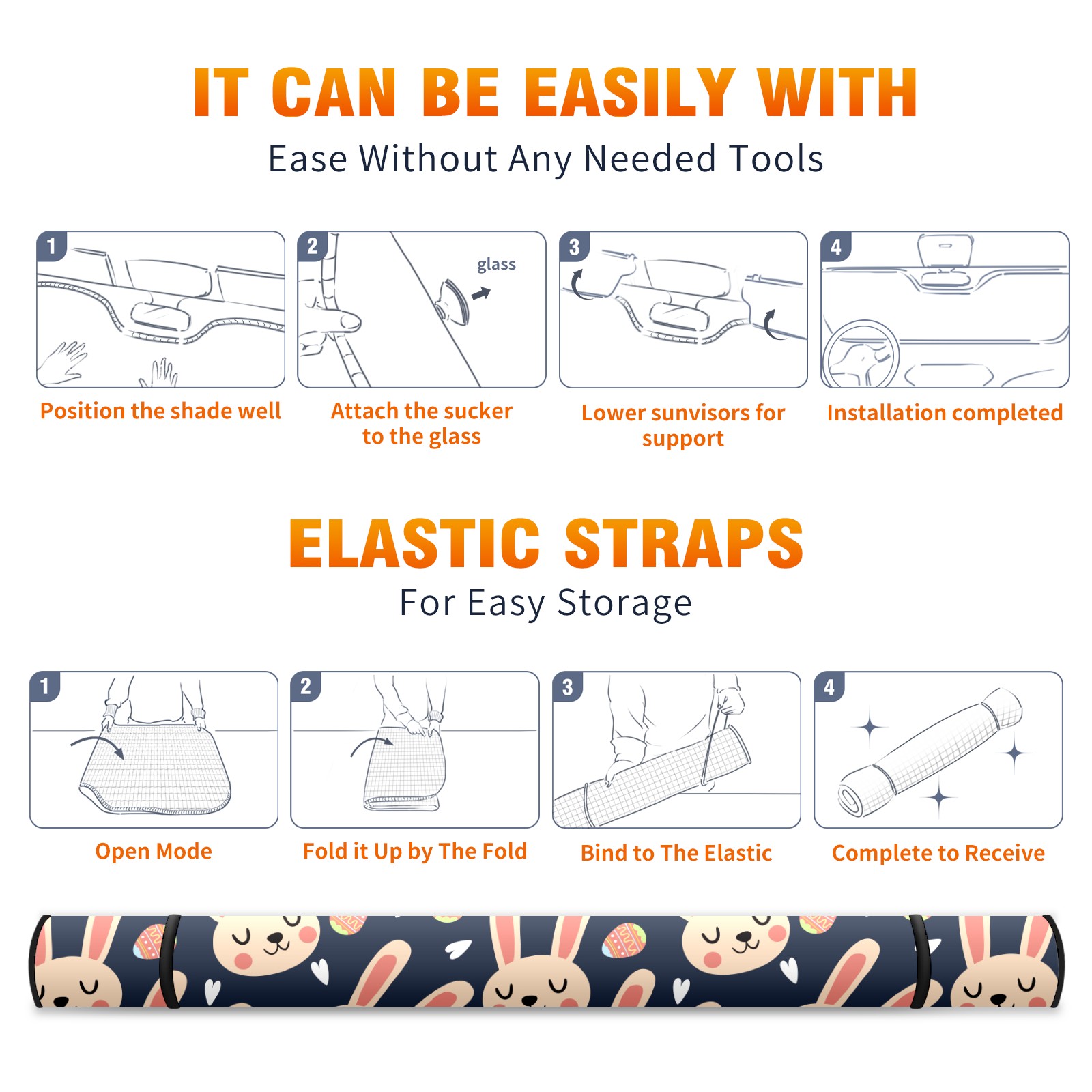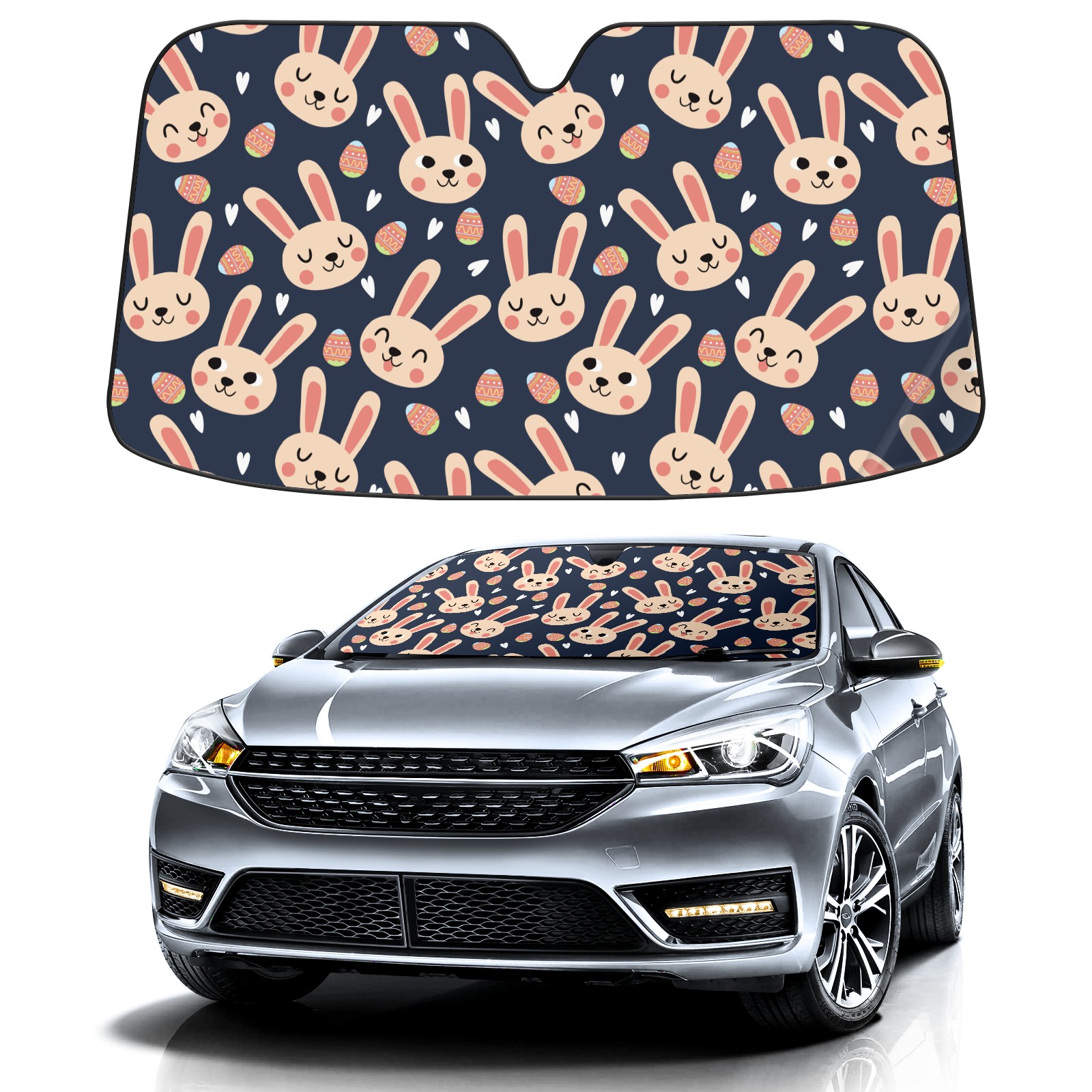 Car Windshield Sun Shade for Front Window-Easter Day Bunny Rabbit Foldable Sun Visor Cover Sunshade for Car Windshield-Car Heat Shield Sunshade Protector-Car Privacy Sun Blocker
