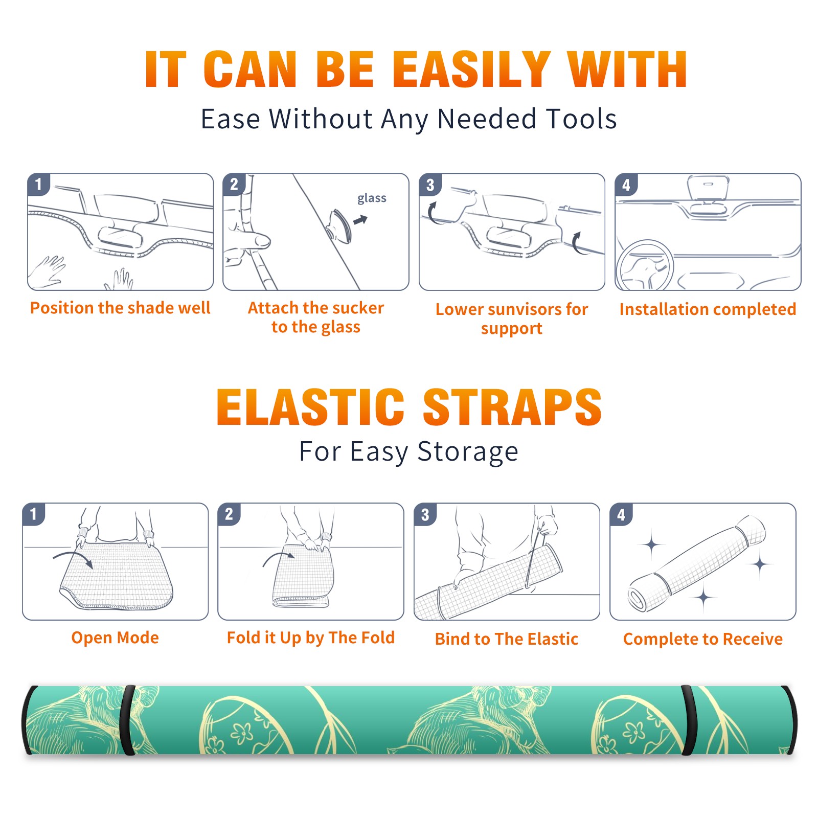 <b>Foldable Premium Car Windshield Sunshade is your great solution to reduce your car’s interior temperature dramatically!This is definitely a must-have item for your summer travel! </b> <br> ●<b>Size: 55"L x 30"W </b> <br> ●<b>Blocking Uv Rays & Heat Insulation</b><br> Our vehicle sunshade provides effective UV, sun, and summer heat protection .Maintains dashboards by preventing fading and cracking <br> ●<b>Easy-To-Store Folding Design Makes Storage Convenient</b> <br> Car sunshades comes with removable suction cups and elastic bands that you can install or remove easily and quickly. In a matter of seconds you can install your purchased windshield visor. And the detachable suction cups on the automotive's sun visor leave no marks on the windows when removed. When not in use, the front windshield can be conveniently and effectively placed on the door pocket or the dashboard, which is beautiful and does not occupy the interior space.<br> <br> <b>Stay cool and protected this summer with our fun and functional car windshield sun shade!Perfectly crafted to fit most vehicles, this premium quality sun blocker is your go-to automotive accessory. it's time to say goodbye to scorching hot seats and hello to comfort on every drive!</b>
