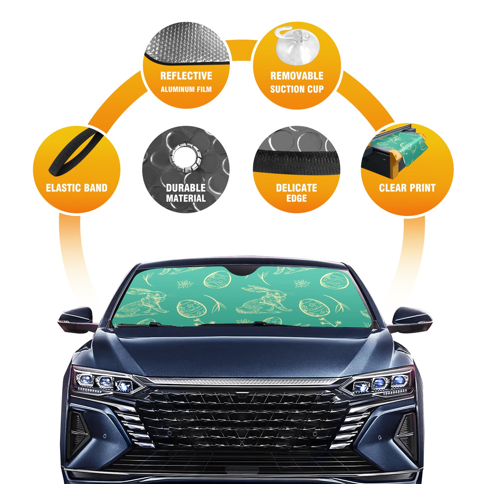 Car Windshield Sun Shade for Front Window-Colorful Easter Foldable Sun Visor Cover Sunshade for Car Windshield-Car Heat Shield Sunshade Protector-Car Privacy Sun Blocker