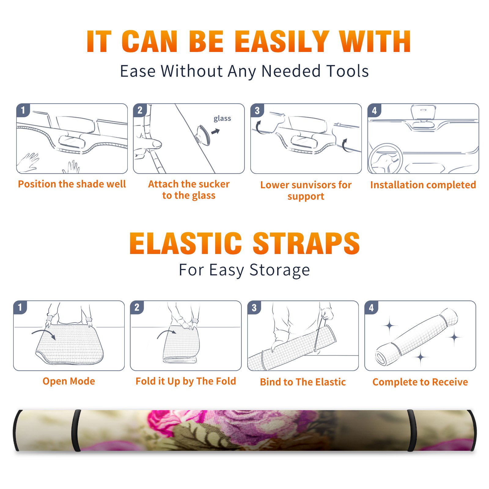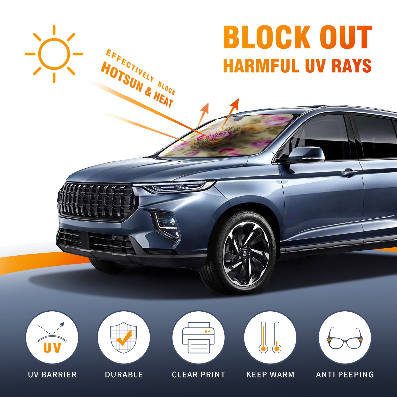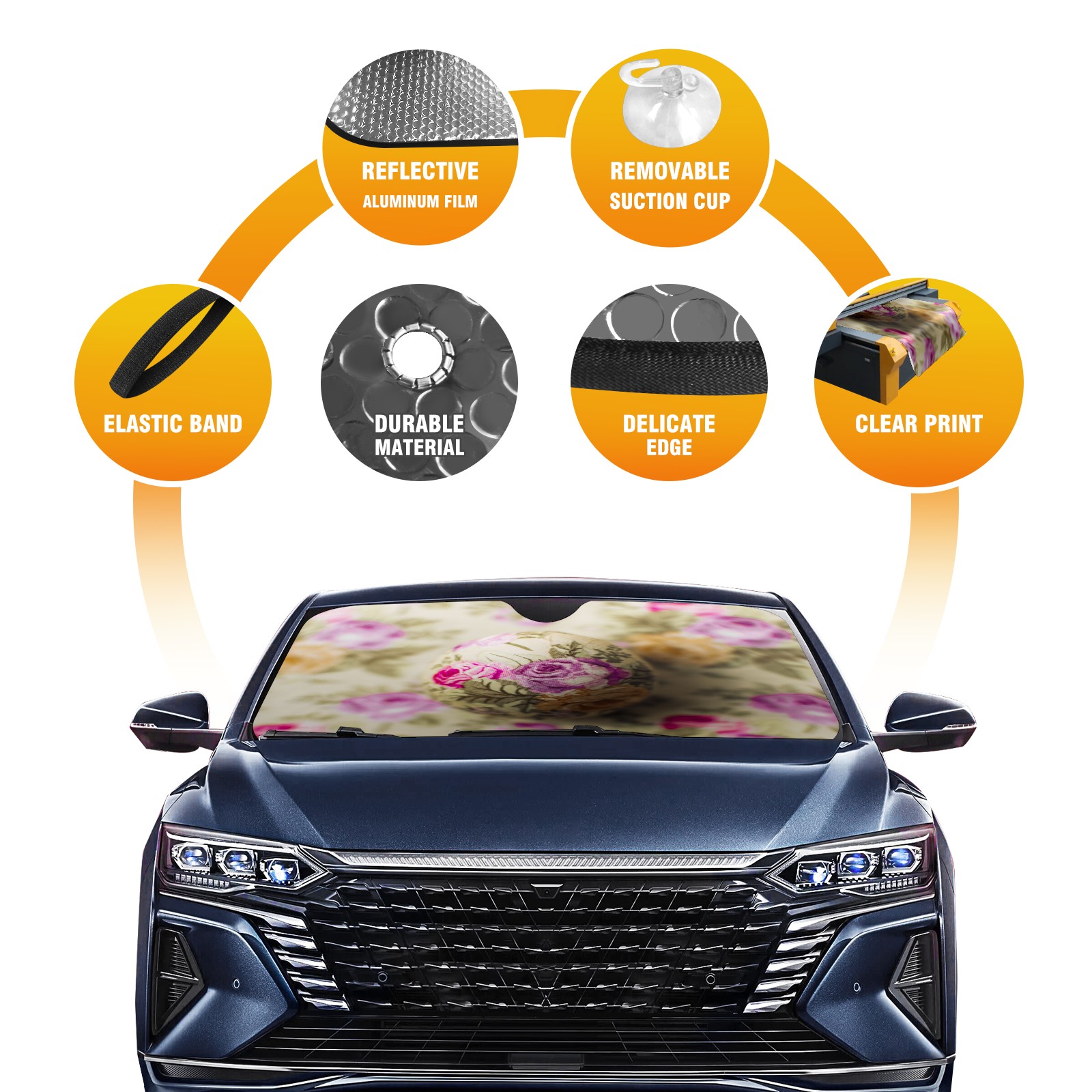 <b>Foldable Premium Car Windshield Sunshade is your great solution to reduce your car’s interior temperature dramatically!This is definitely a must-have item for your summer travel! </b> <br> ●<b>Size: 55"L x 30"W </b> <br> ●<b>Blocking Uv Rays & Heat Insulation</b><br> Our vehicle sunshade provides effective UV, sun, and summer heat protection .Maintains dashboards by preventing fading and cracking <br> ●<b>Easy-To-Store Folding Design Makes Storage Convenient</b> <br> Car sunshades comes with removable suction cups and elastic bands that you can install or remove easily and quickly. In a matter of seconds you can install your purchased windshield visor. And the detachable suction cups on the automotive's sun visor leave no marks on the windows when removed. When not in use, the front windshield can be conveniently and effectively placed on the door pocket or the dashboard, which is beautiful and does not occupy the interior space.<br> <br> <b>Stay cool and protected this summer with our fun and functional car windshield sun shade!Perfectly crafted to fit most vehicles, this premium quality sun blocker is your go-to automotive accessory. it's time to say goodbye to scorching hot seats and hello to comfort on every drive!</b>