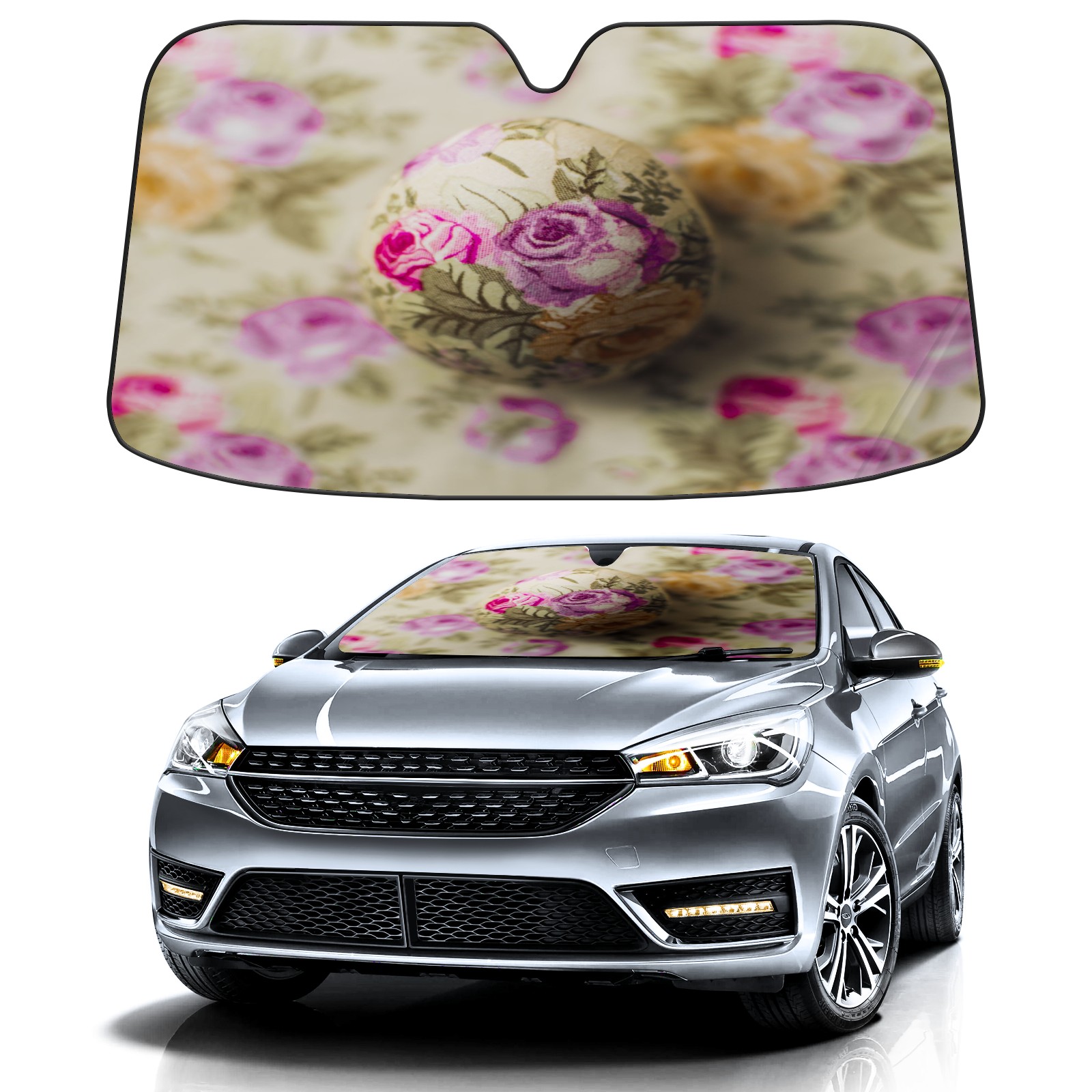 Car Windshield Sun Shade for Front Window-Rose Easter Egg Foldable Sun Visor Cover Sunshade for Car Windshield-Car Heat Shield Sunshade Protector-Car Privacy Sun Blocker