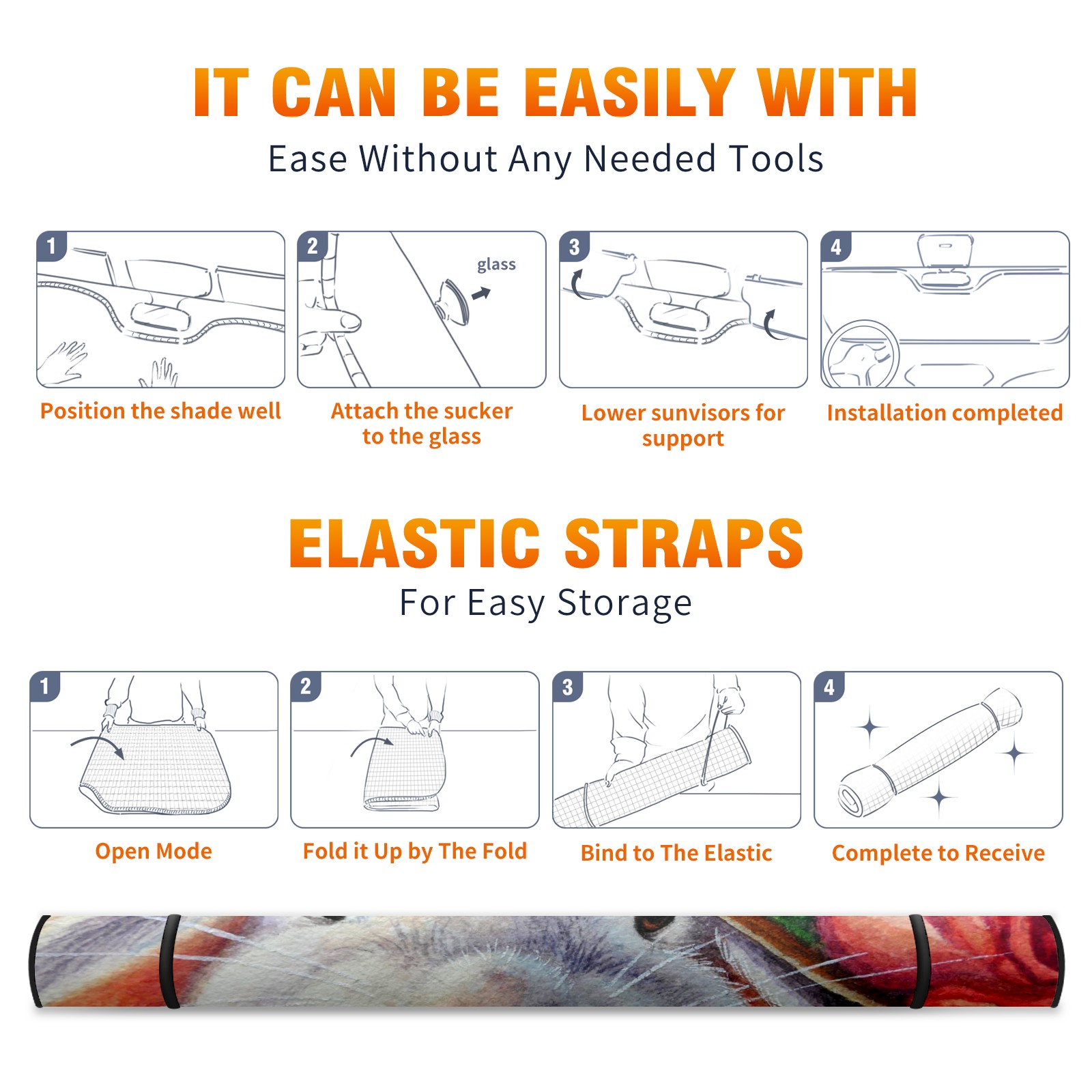 <b>Foldable Premium Car Windshield Sunshade is your great solution to reduce your car’s interior temperature dramatically!This is definitely a must-have item for your summer travel! </b> <br> ●<b>Size: 55"L x 30"W </b> <br> ●<b>Blocking Uv Rays & Heat Insulation</b><br> Our vehicle sunshade provides effective UV, sun, and summer heat protection .Maintains dashboards by preventing fading and cracking <br> ●<b>Easy-To-Store Folding Design Makes Storage Convenient</b> <br> Car sunshades comes with removable suction cups and elastic bands that you can install or remove easily and quickly. In a matter of seconds you can install your purchased windshield visor. And the detachable suction cups on the automotive's sun visor leave no marks on the windows when removed. When not in use, the front windshield can be conveniently and effectively placed on the door pocket or the dashboard, which is beautiful and does not occupy the interior space.<br> <br> <b>Stay cool and protected this summer with our fun and functional car windshield sun shade!Perfectly crafted to fit most vehicles, this premium quality sun blocker is your go-to automotive accessory. it's time to say goodbye to scorching hot seats and hello to comfort on every drive!</b>