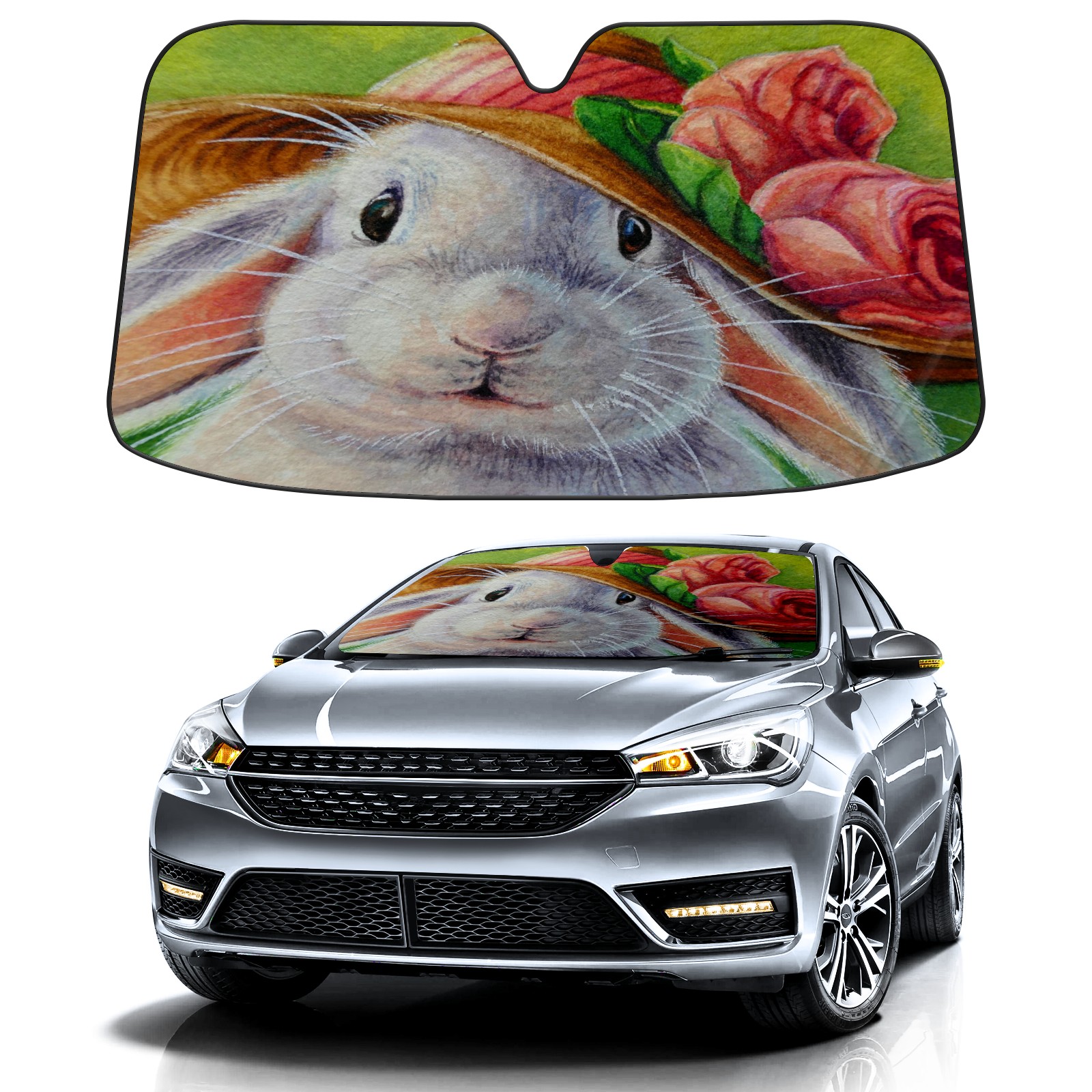 Car Windshield Sun Shade for Front Window-Easter Bunny Rabbit Hare In Spring Bonnet Foldable Sun Visor Cover Sunshade for Car Windshield-Car Heat Shield Sunshade Protector-Car Privacy Sun Blocker
