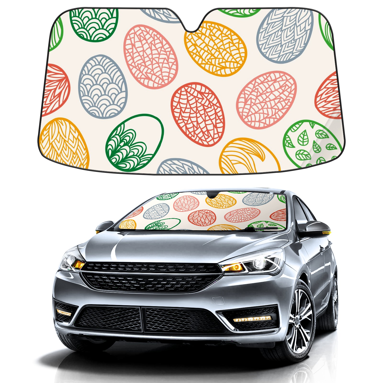 Car Windshield Sun Shade for Front Window-Easter Eggs Pattern With Ornaments Foldable Sun Visor Cover Sunshade for Car Windshield-Car Heat Shield Sunshade Protector-Car Privacy Sun Blocker
