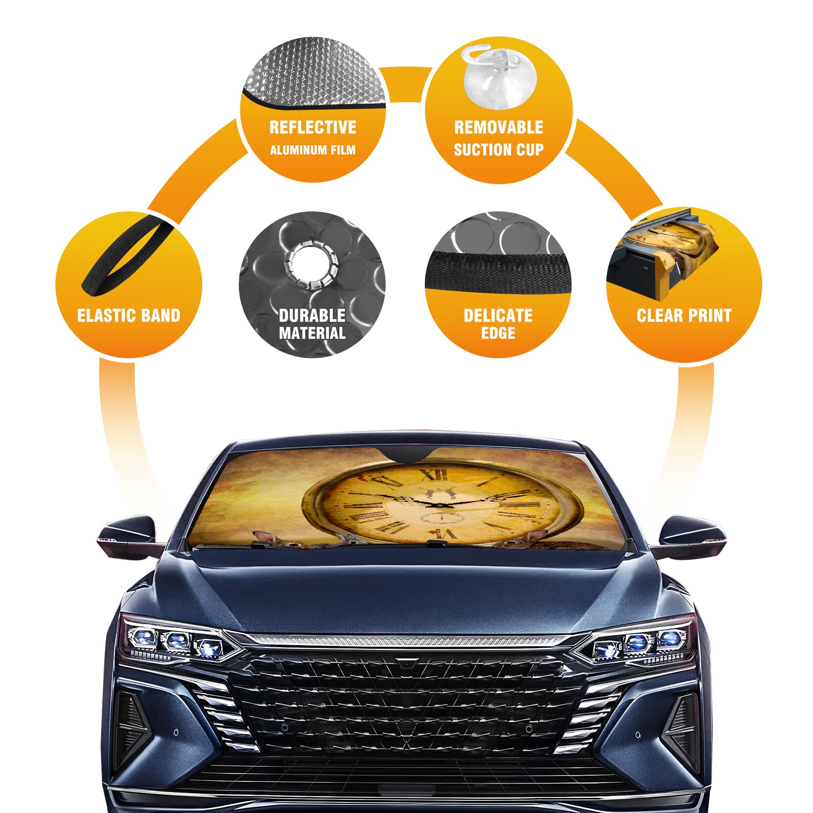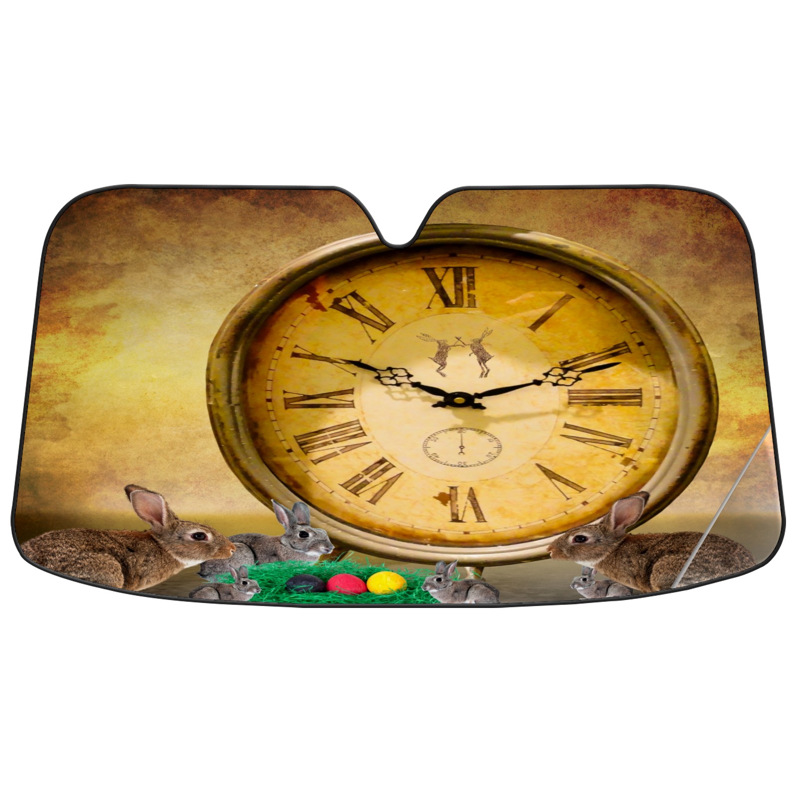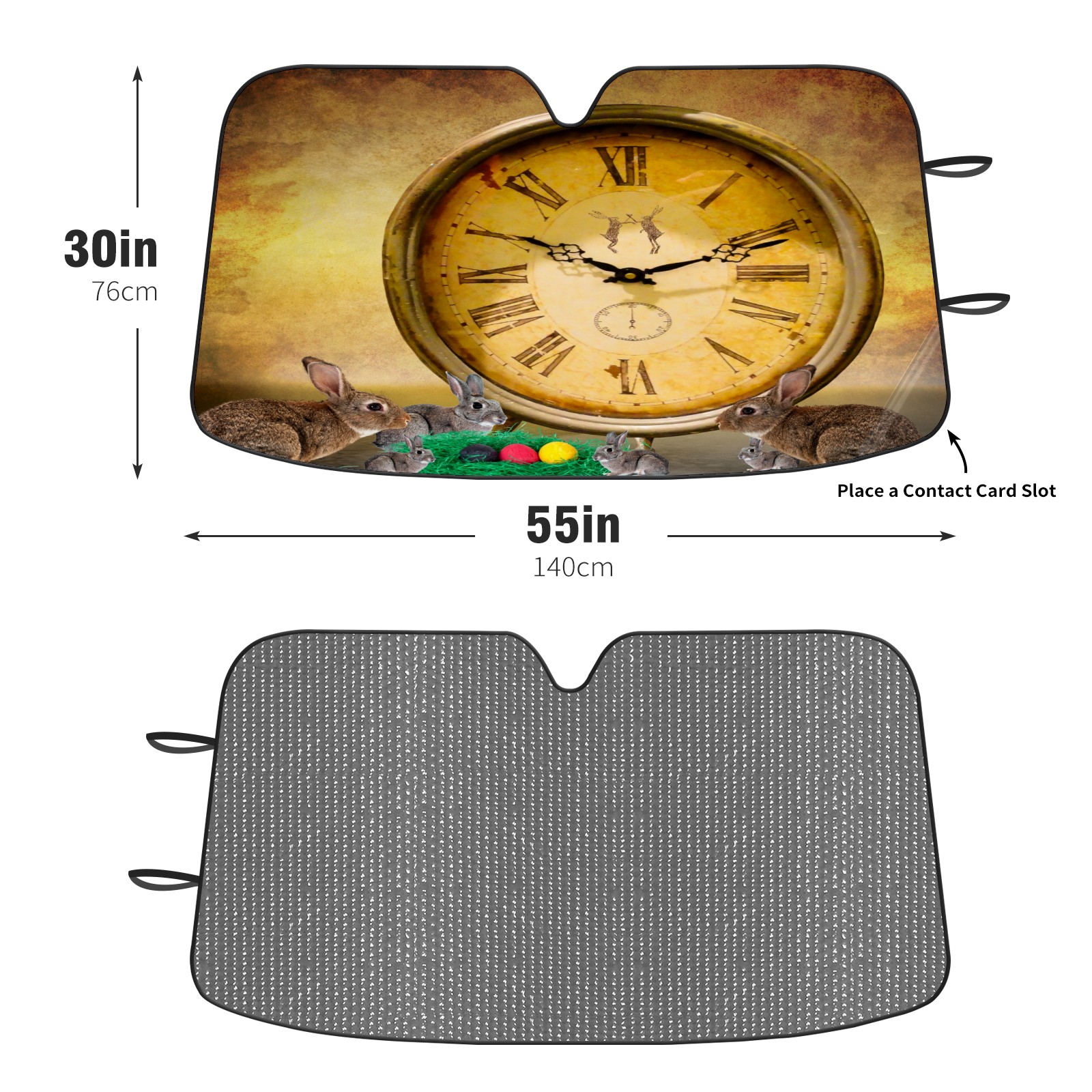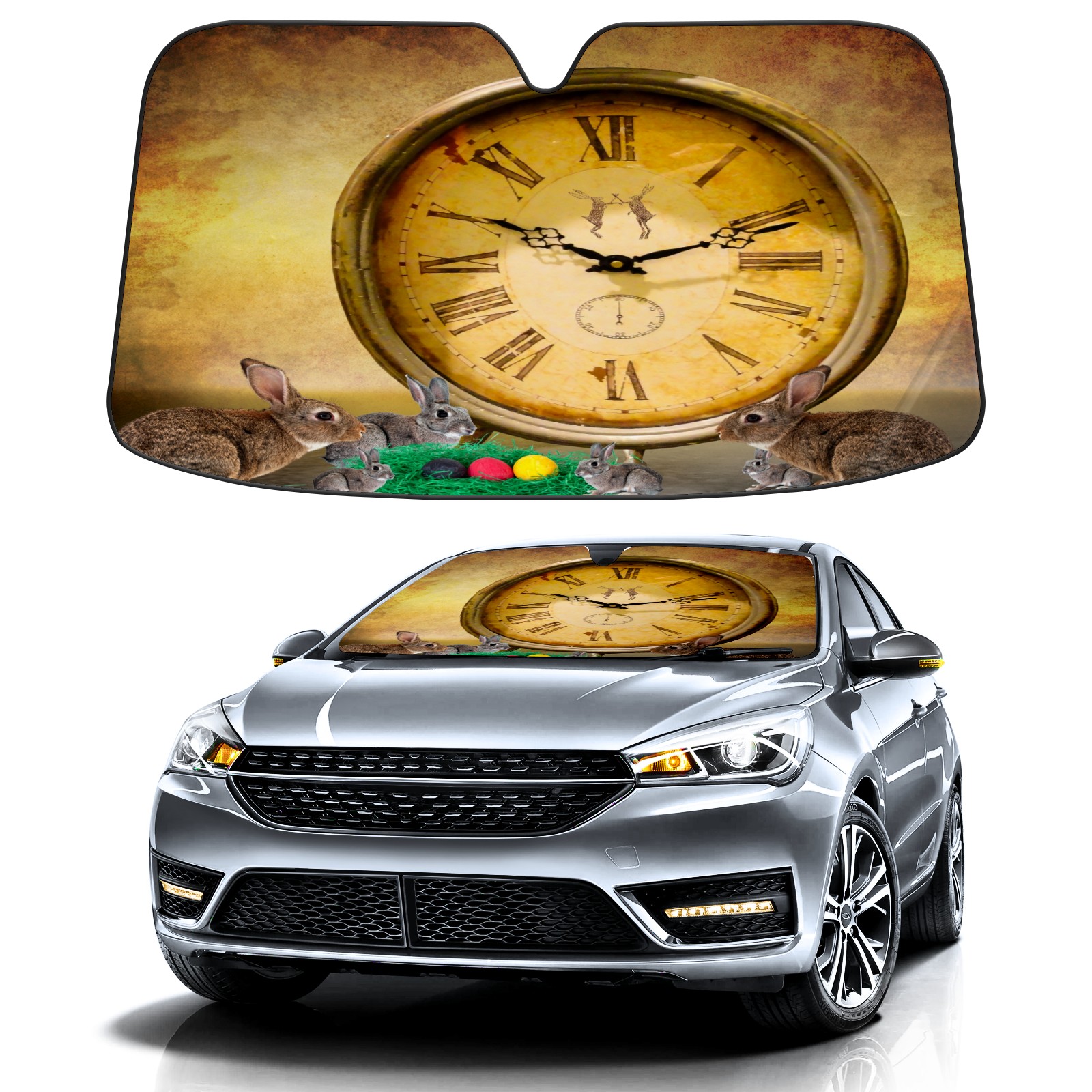 Car Windshield Sun Shade for Front Window-Easter Hare Clock Foldable Sun Visor Cover Sunshade for Car Windshield-Car Heat Shield Sunshade Protector-Car Privacy Sun Blocker
