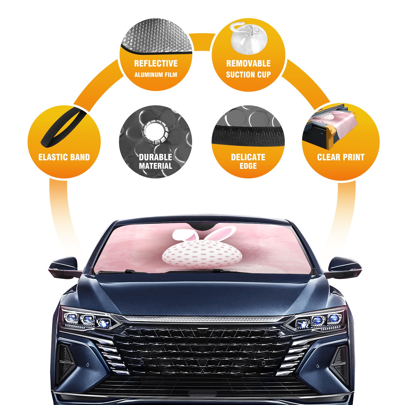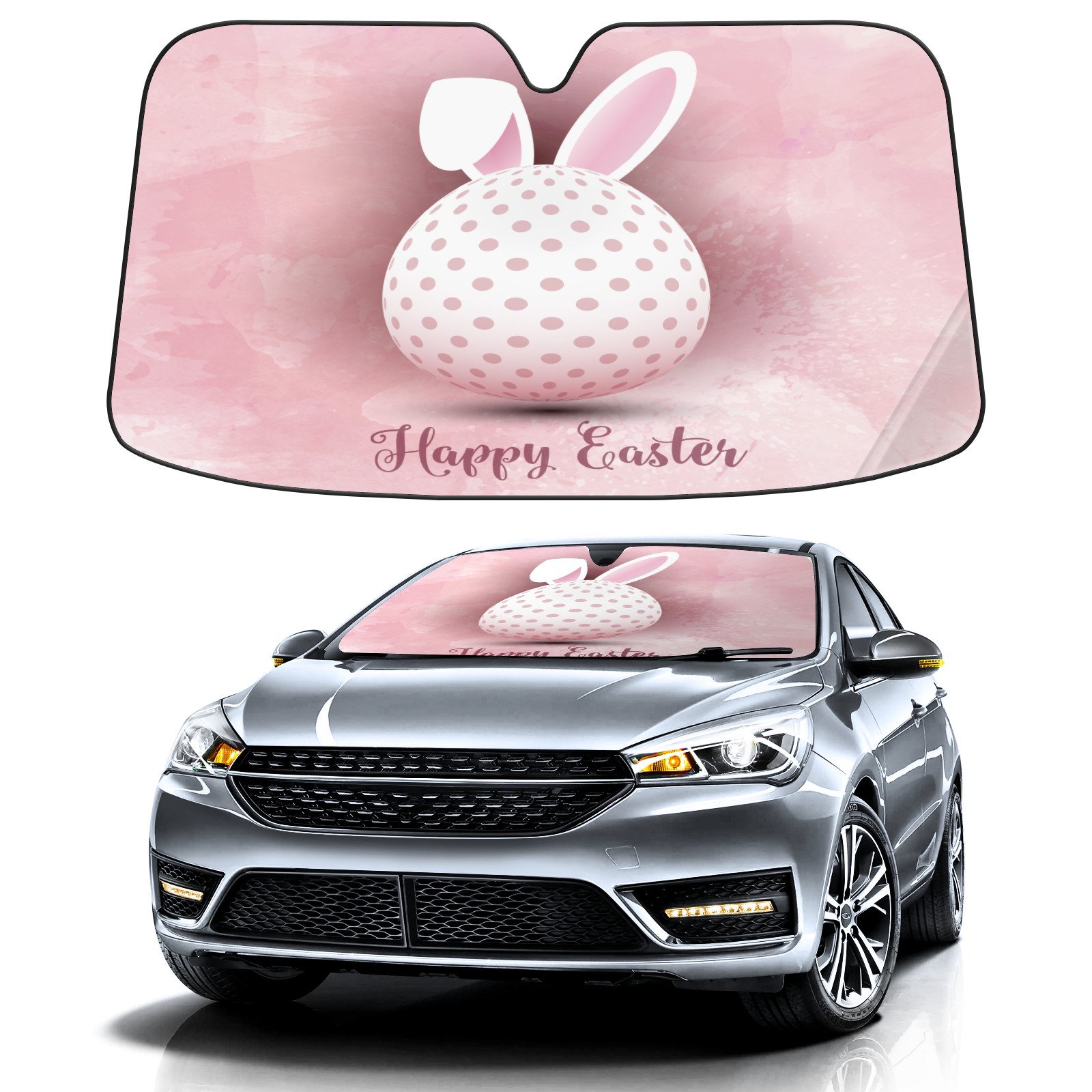 Car Windshield Sun Shade for Front Window-Funny Easter Egg With Bunny Ears Pink Foldable Sun Visor Cover Sunshade for Car Windshield-Car Heat Shield Sunshade Protector-Car Privacy Sun Blocker