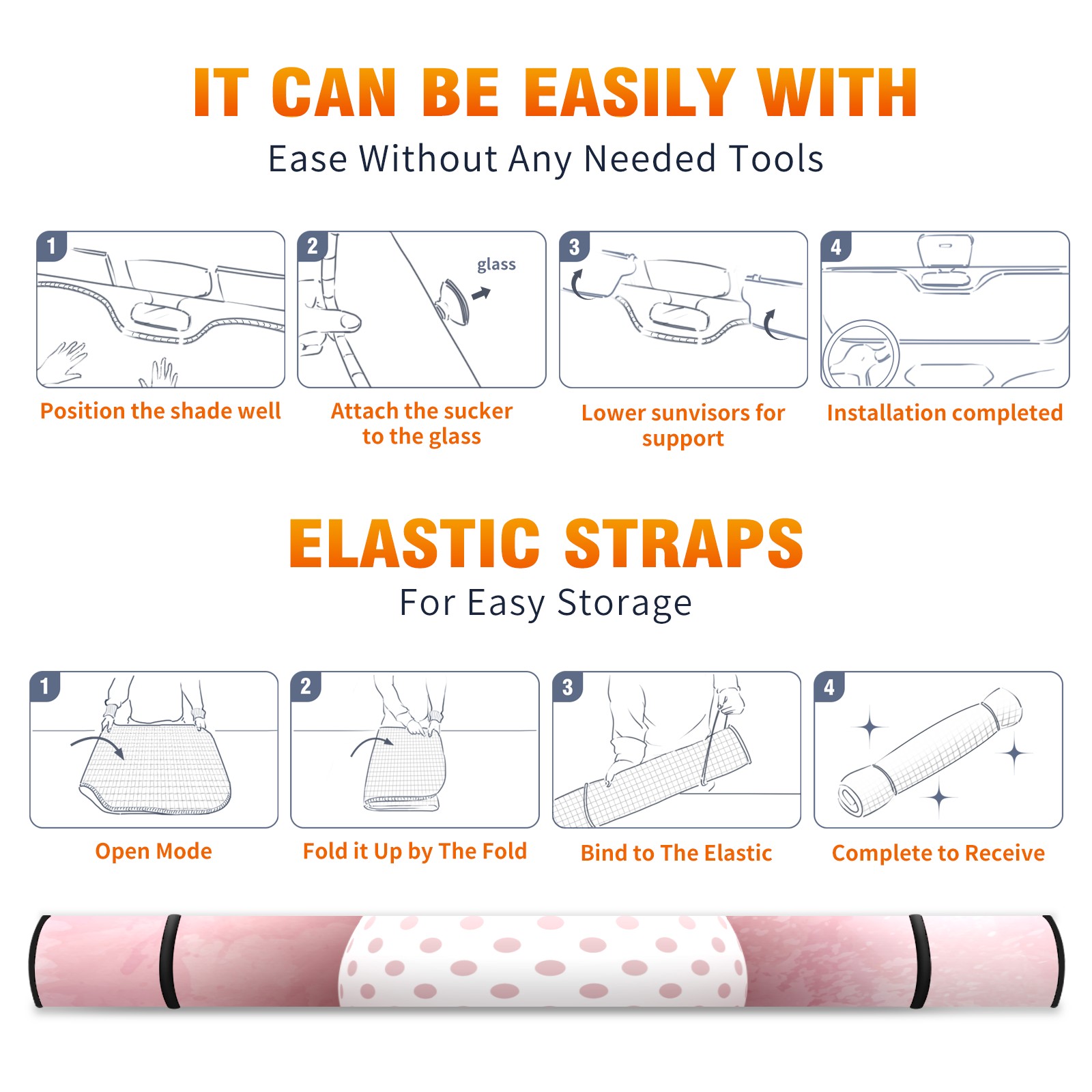 <b>Foldable Premium Car Windshield Sunshade is your great solution to reduce your car’s interior temperature dramatically!This is definitely a must-have item for your summer travel! </b> <br> ●<b>Size: 55"L x 30"W </b> <br> ●<b>Blocking Uv Rays & Heat Insulation</b><br> Our vehicle sunshade provides effective UV, sun, and summer heat protection .Maintains dashboards by preventing fading and cracking <br> ●<b>Easy-To-Store Folding Design Makes Storage Convenient</b> <br> Car sunshades comes with removable suction cups and elastic bands that you can install or remove easily and quickly. In a matter of seconds you can install your purchased windshield visor. And the detachable suction cups on the automotive's sun visor leave no marks on the windows when removed. When not in use, the front windshield can be conveniently and effectively placed on the door pocket or the dashboard, which is beautiful and does not occupy the interior space.<br> <br> <b>Stay cool and protected this summer with our fun and functional car windshield sun shade!Perfectly crafted to fit most vehicles, this premium quality sun blocker is your go-to automotive accessory. it's time to say goodbye to scorching hot seats and hello to comfort on every drive!</b>