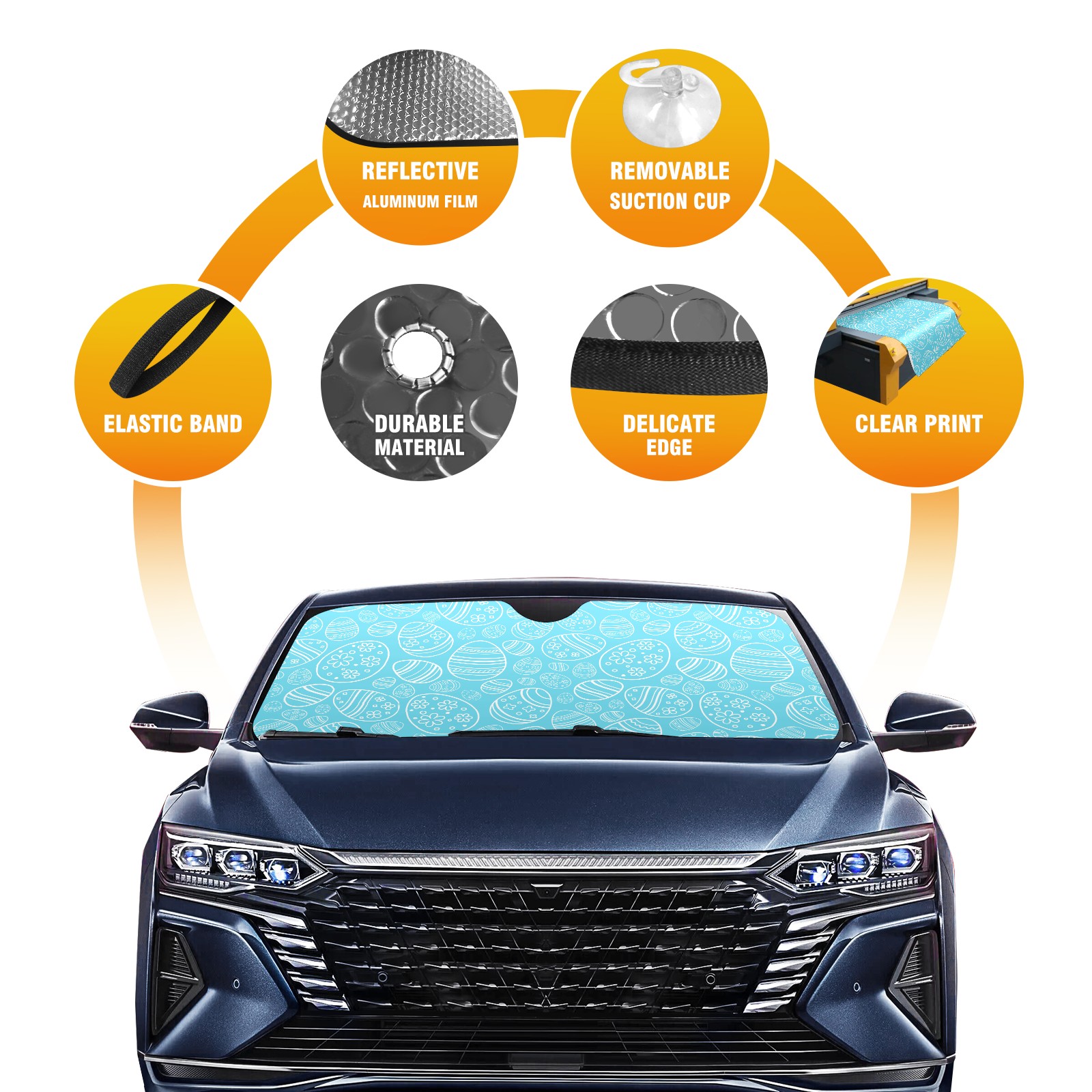 Car Windshield Sun Shade for Front Window-Easter Egg Pattern Blue Foldable Sun Visor Cover Sunshade for Car Windshield-Car Heat Shield Sunshade Protector-Car Privacy Sun Blocker