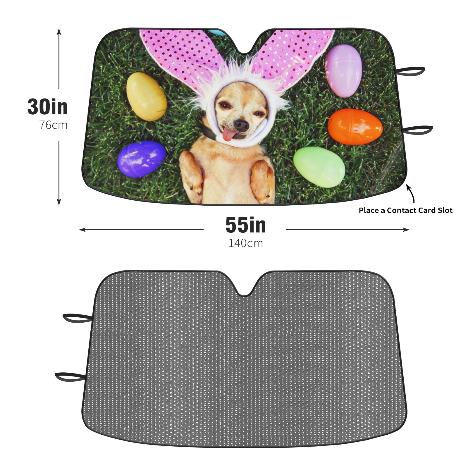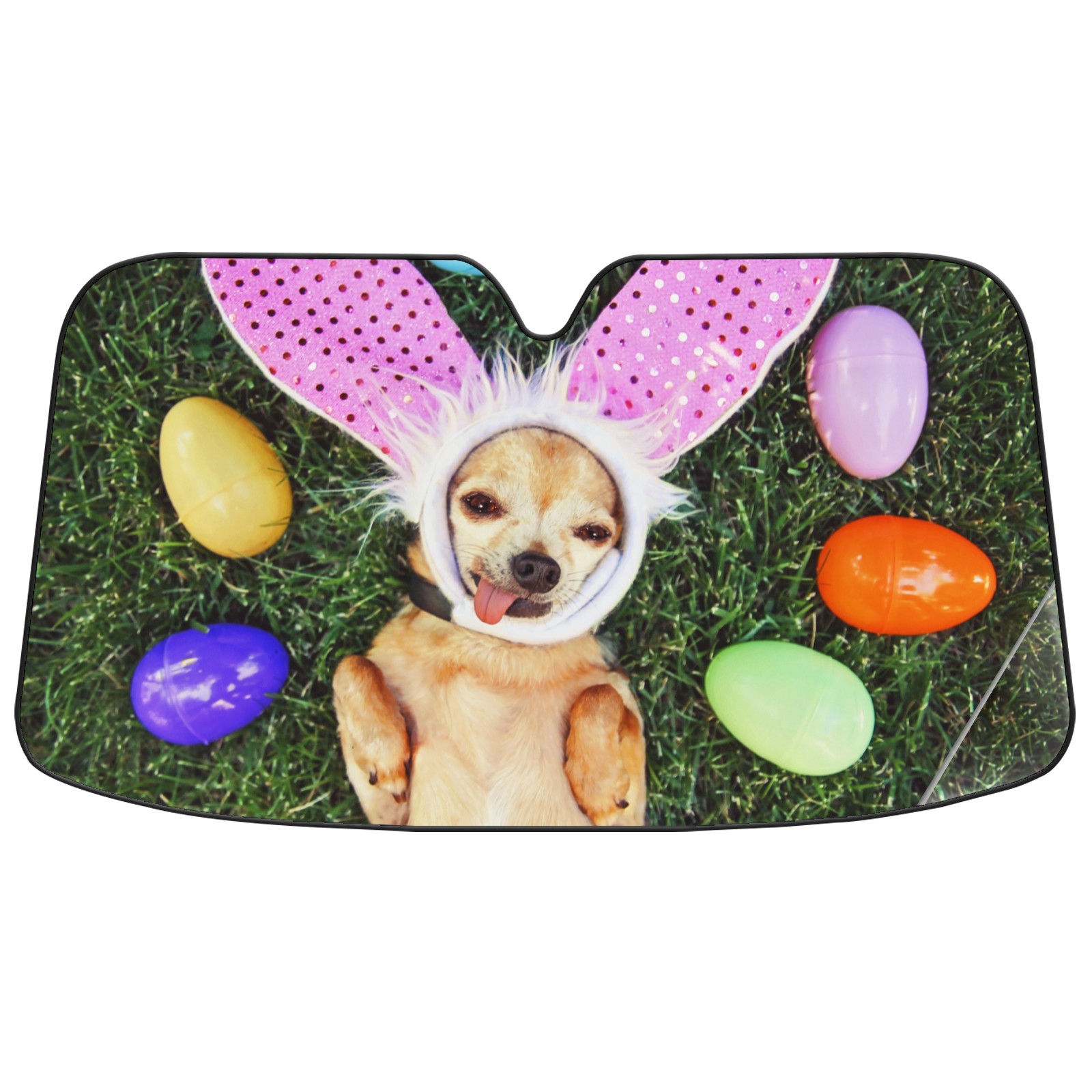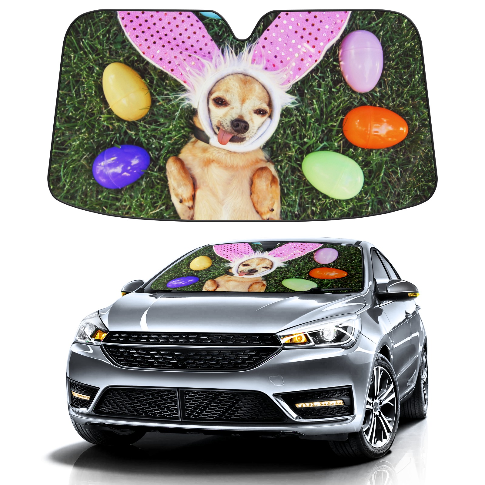 Car Windshield Sun Shade for Front Window-Easter Egg Funny Dog Rabbit Ears Foldable Sun Visor Cover Sunshade for Car Windshield-Car Heat Shield Sunshade Protector-Car Privacy Sun Blocker