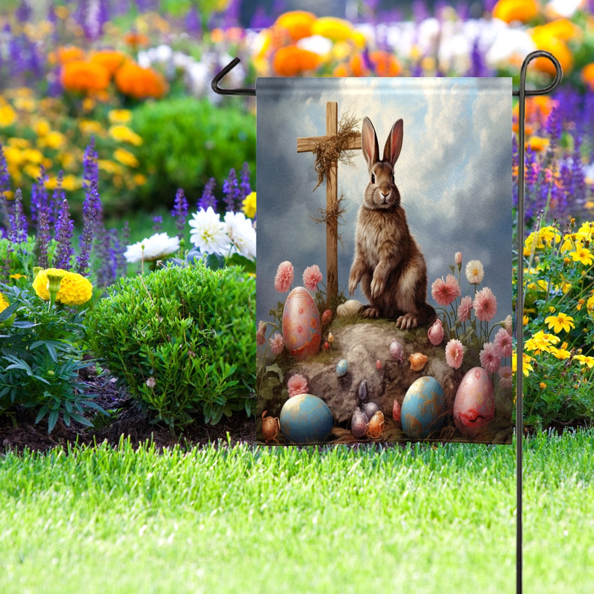 Easter Bunny (30) Garden Flag Double Sided Yard Flags Banners for Outside Outdoor House Lawn Decor Holiday Decoration