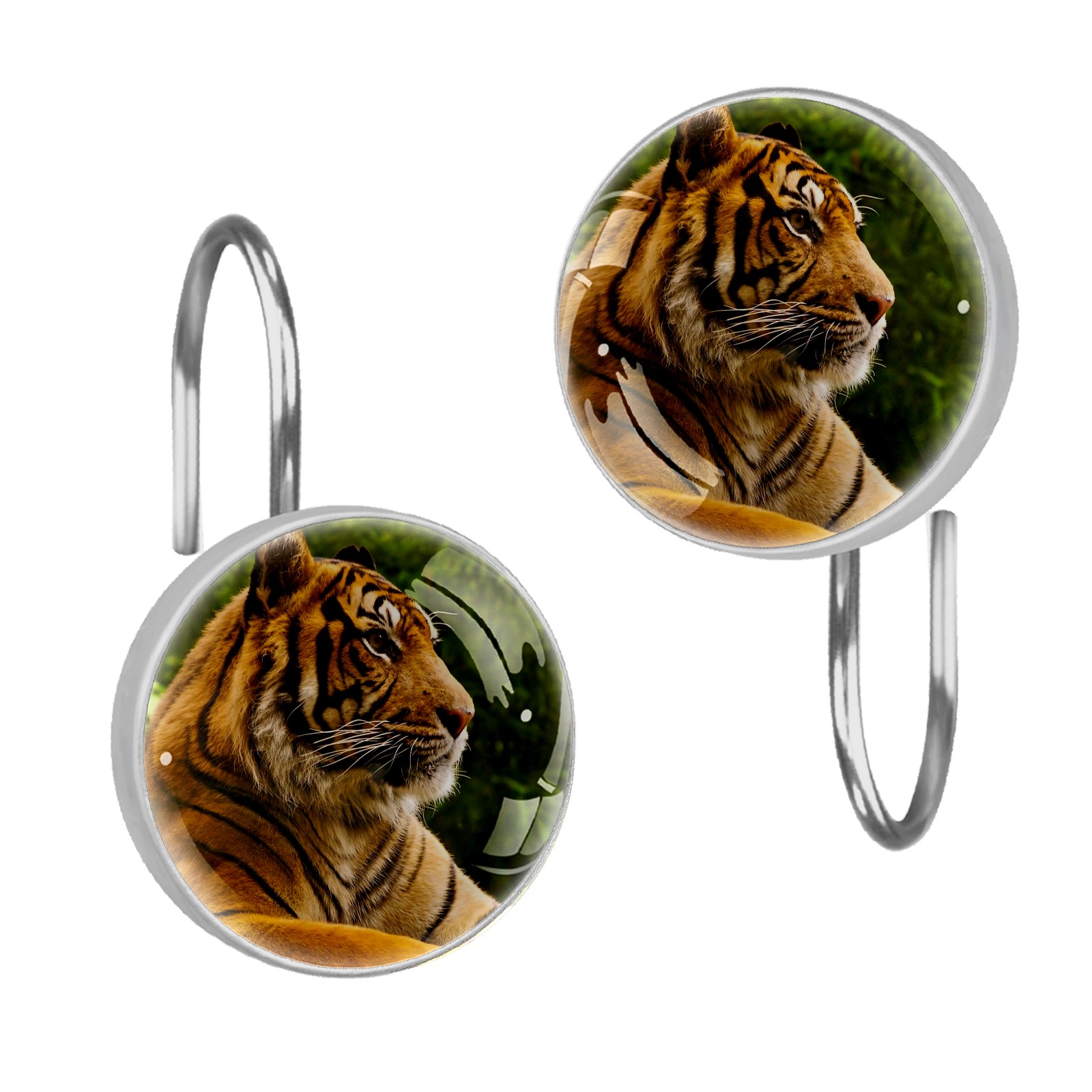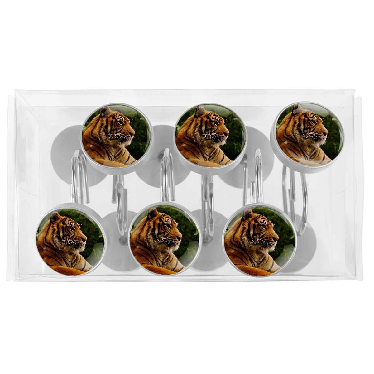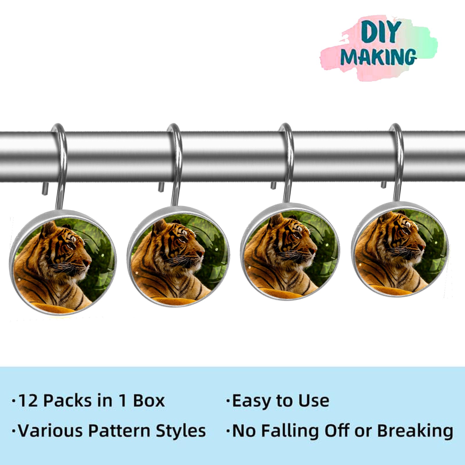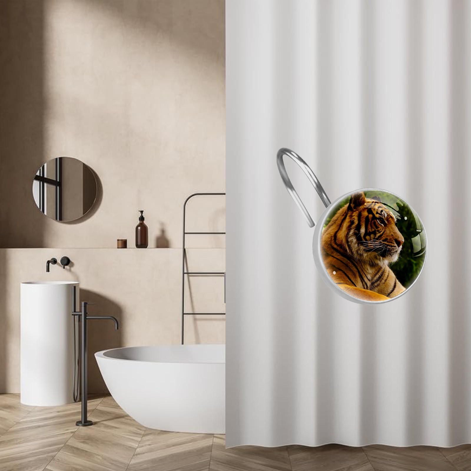 Decorative Animal Tiger (1) Shower Curtain Hooks 12pcs Crystal Glass Rustproof Shower Hooks for Bathroom Home Decor Stainless Steel Resin Shower Curtain Rings